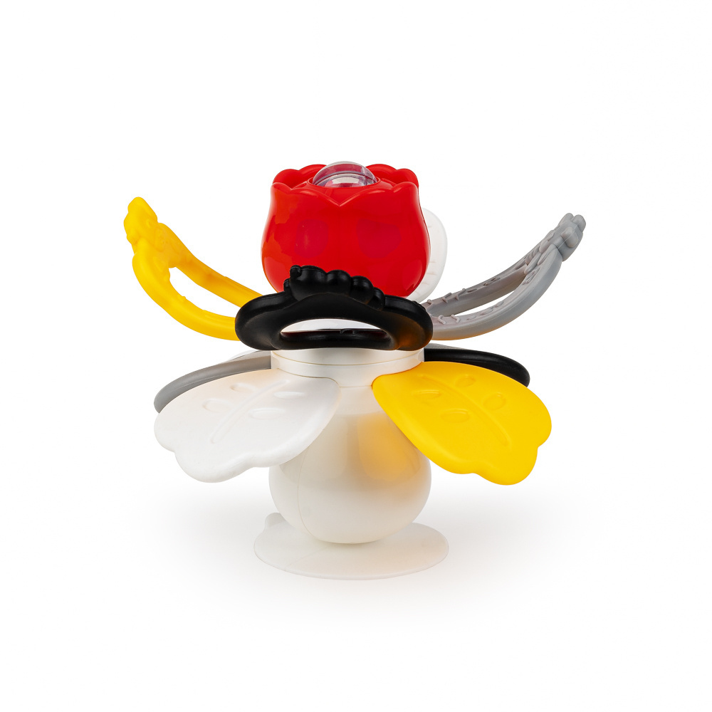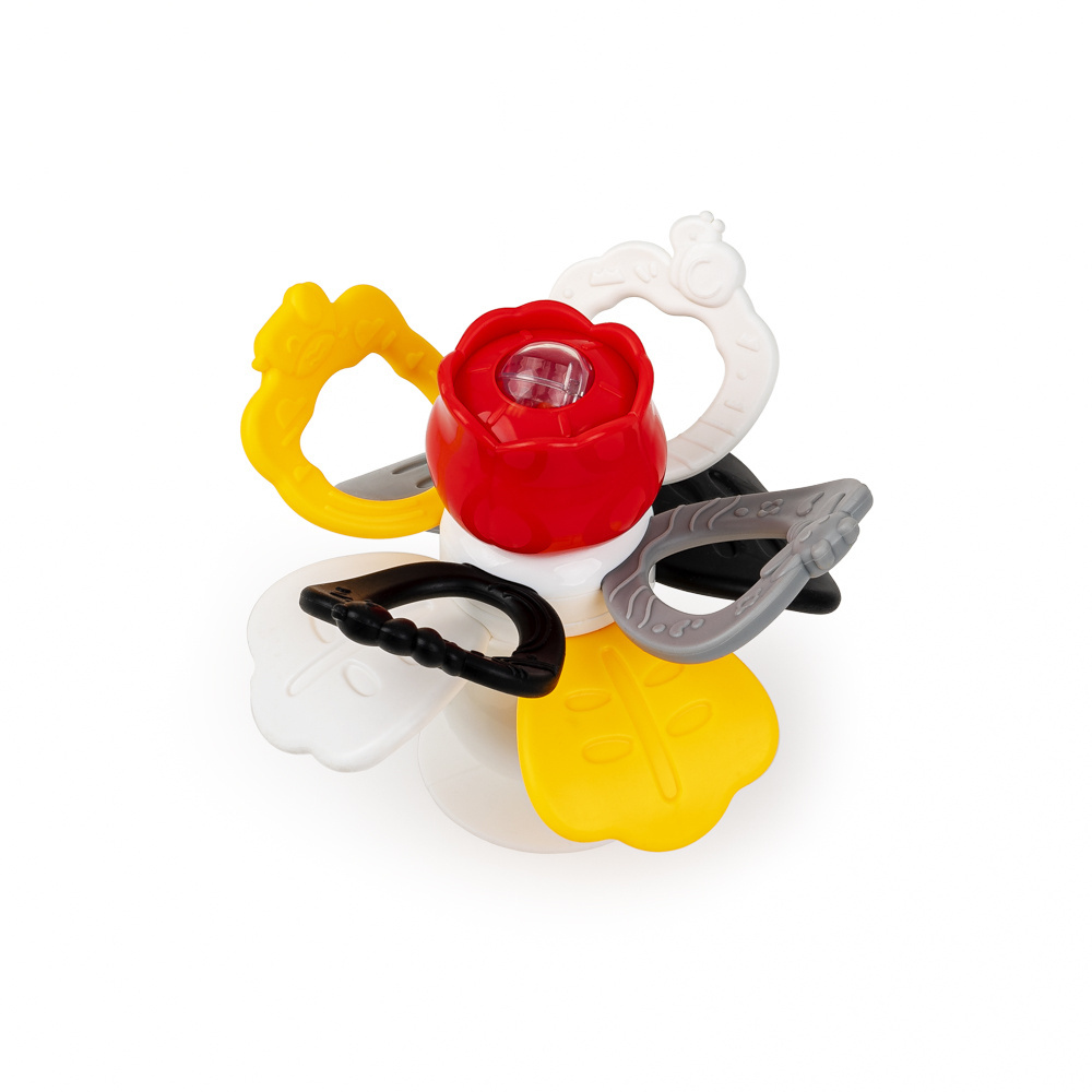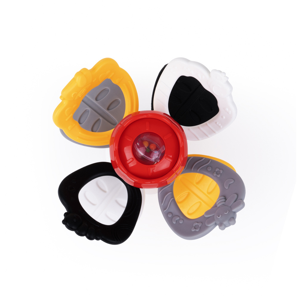Praktyczna przyssawka, umożliwia przymocowanie zabawki do dowolnej, czystej, płaskiej i gładkiej powierzchni, aby zajęła maluszka wesołym przekręcaniem i grzechotaniem w wybranym miejscu.