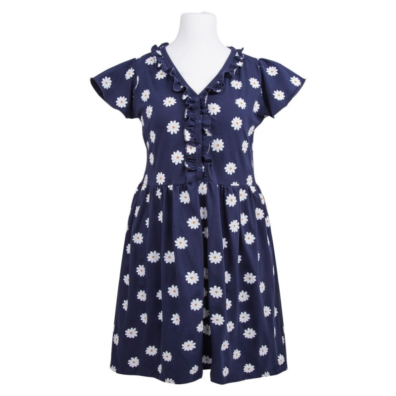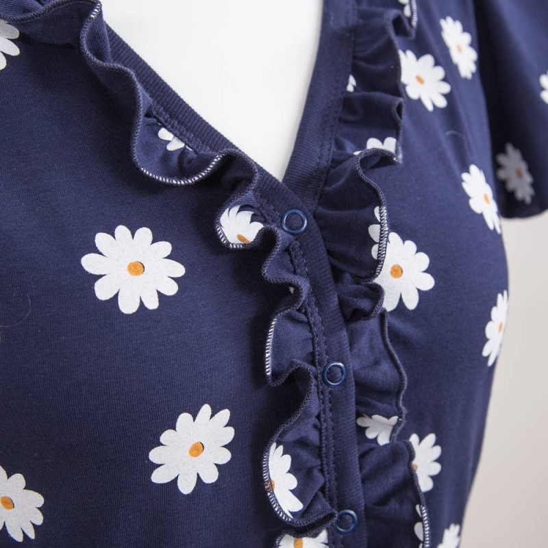 - Koszula ciążowa i do karmienia Linda granatowa w stokrotki - komfort i funkcjonalność dla przyszłych mam.