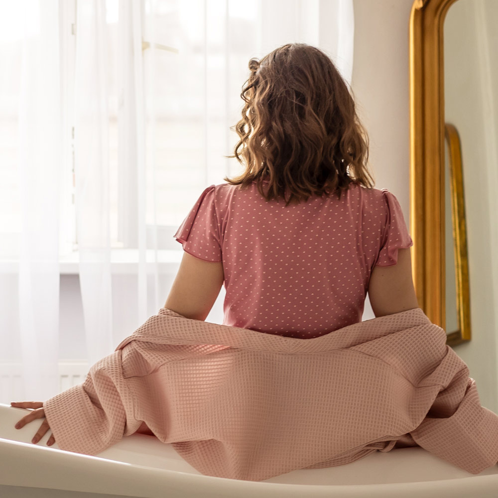- Koszula ciążowa i do karmienia Linda różowa w serduszka – komfort i funkcjonalność dla przyszłych mam.
