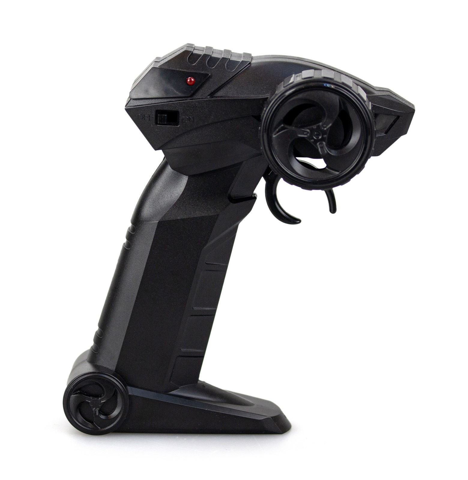 Potężne, terenowe opony świetnie radzą sobie z nierównościami terenu, pokonując je w mgnieniu oka. Autko jeździ we wszystkich kierunkach, a steruje się nim za pomocą dołączonego do zestawu pilota.