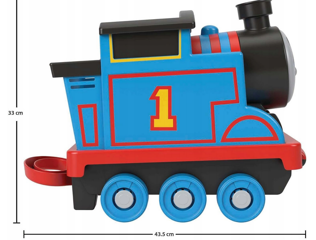 • Mali kolejarze mogą ciągnąć za sobą tę niebieską lokomotywę inspirowaną ich ulubieńcem, aby przeżywać mnóstwo niezwykłych przygód.