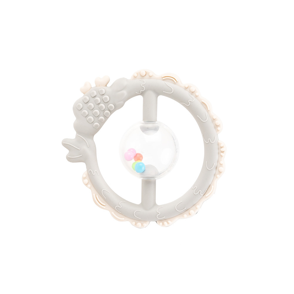 Całą powierzchnię obręczy zdobią zróżnicowane wypustki, które podczas gryzienia będą delikatnie masować dziąsełka malucha.