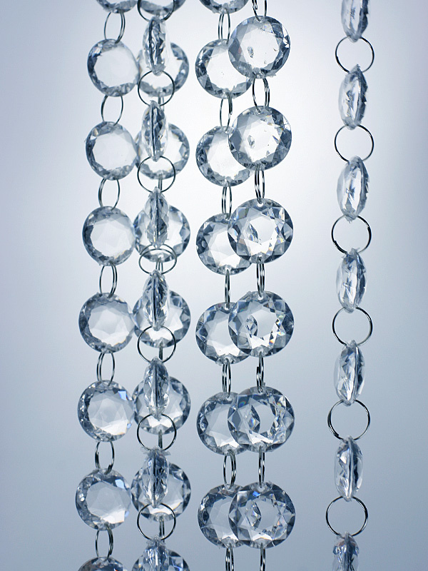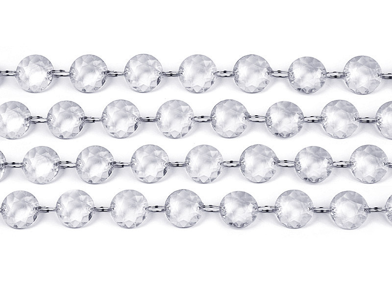Girlanda kryształowa bezbarwna, długość 1 metr. Średnica kryształowego kółka 18 milimetrów.