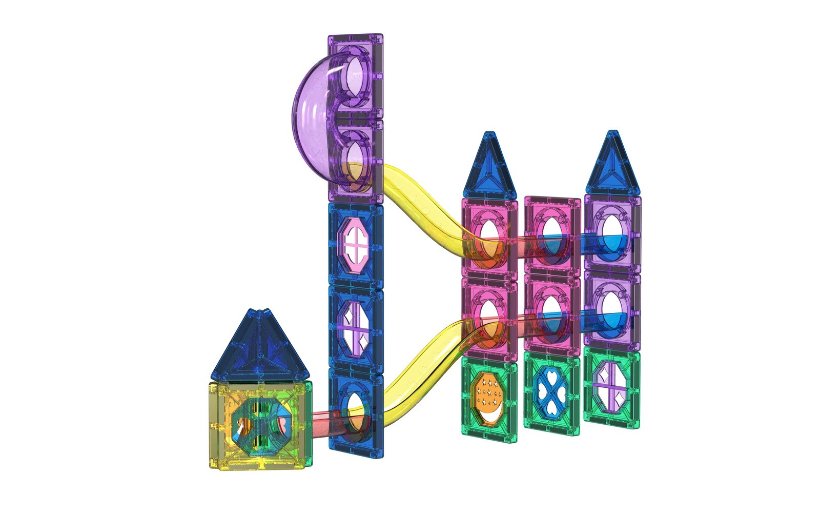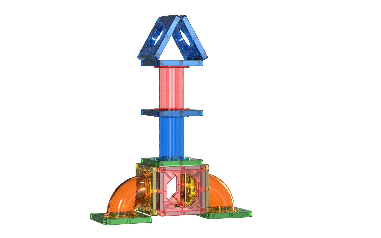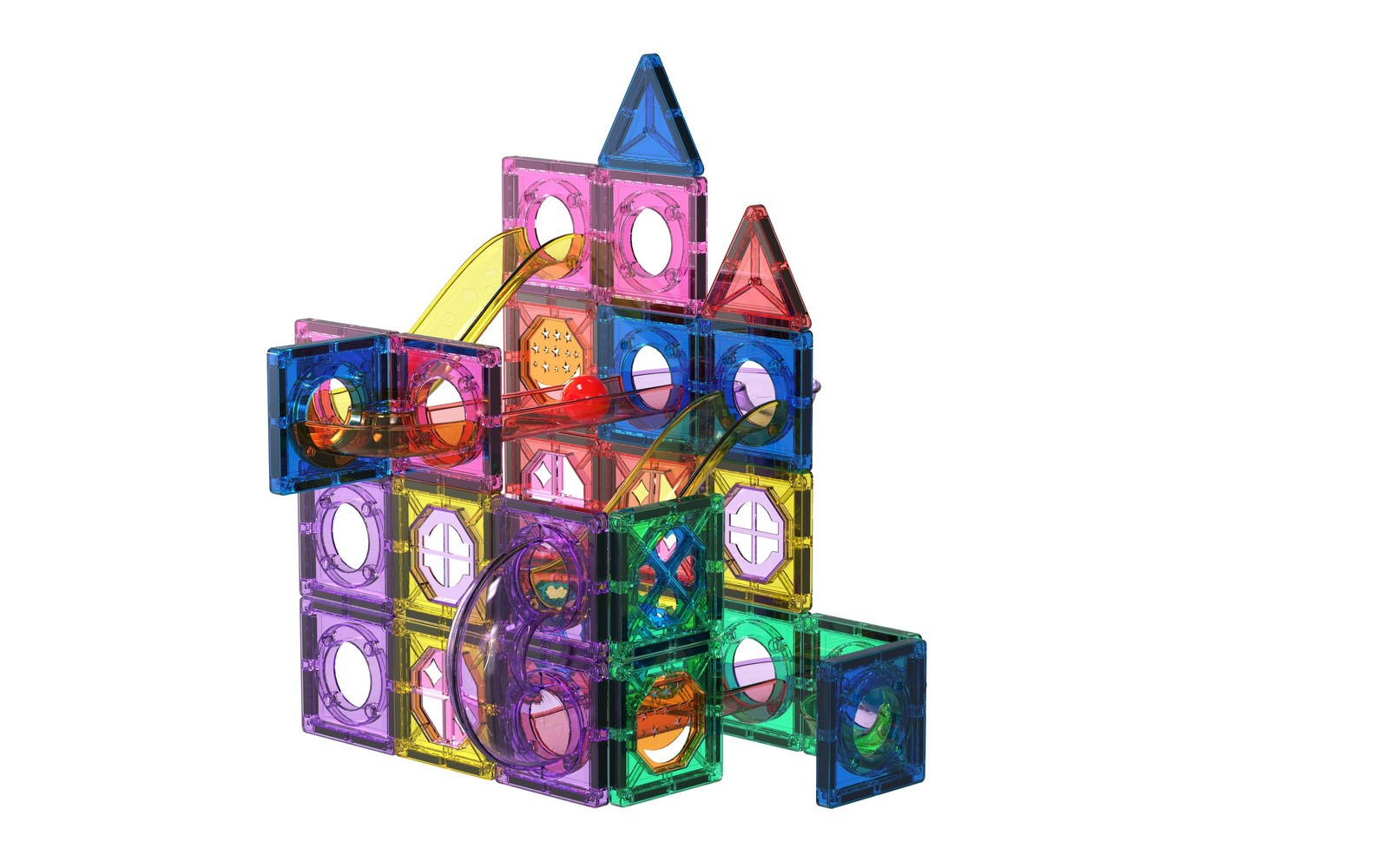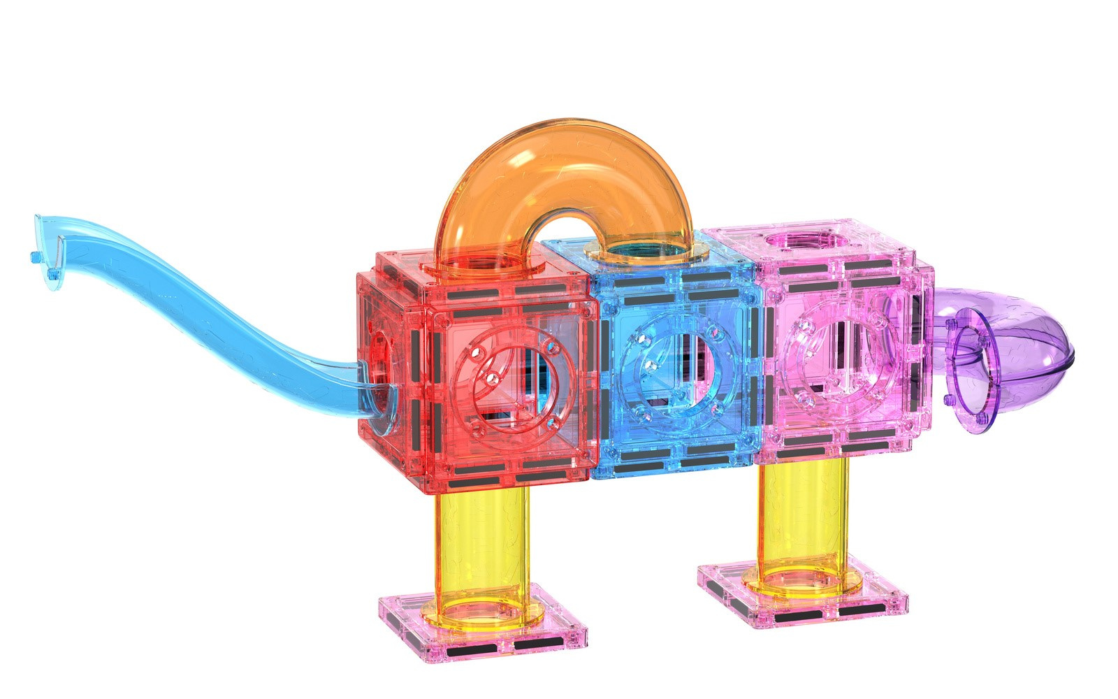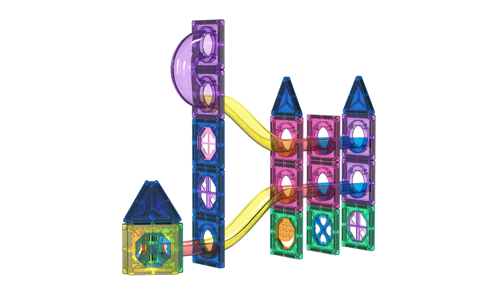 Klocki wykonane z przezroczystego plastiku z wbudowanymi bezpiecznymi magnesami.