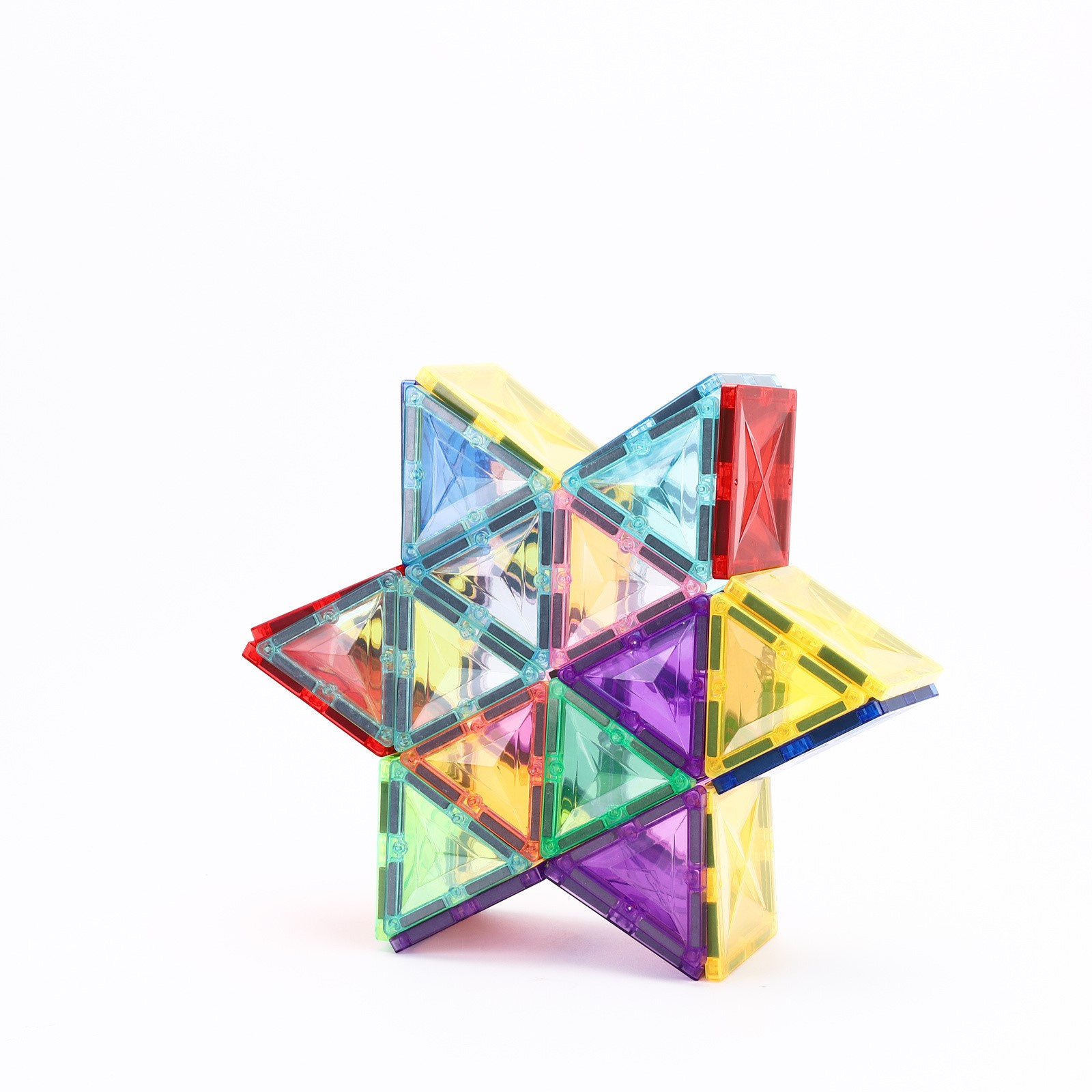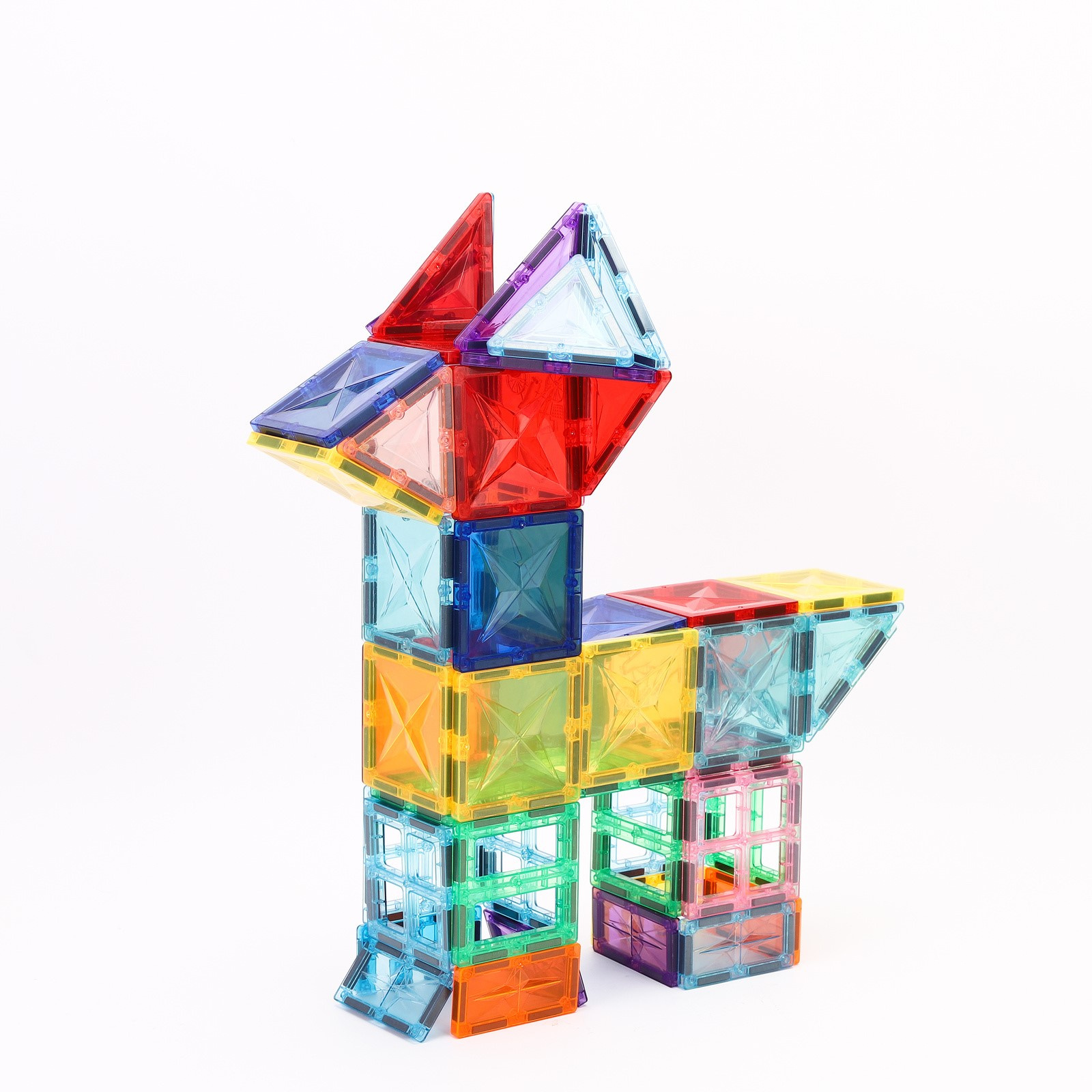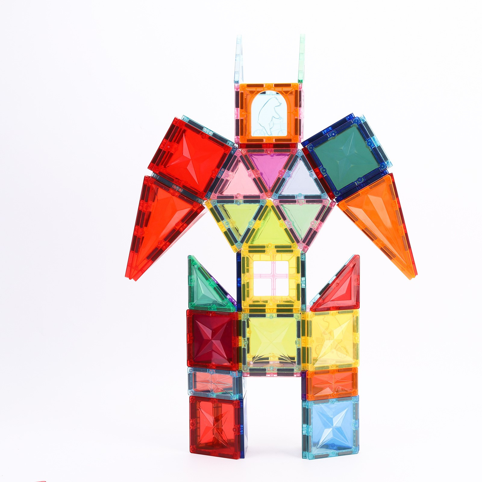 Klocki wykonane z przezroczystego plastiku z wbudowanymi bezpiecznymi magnesami.