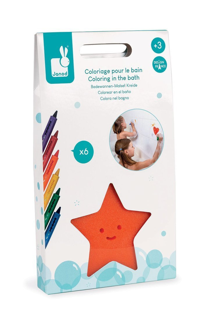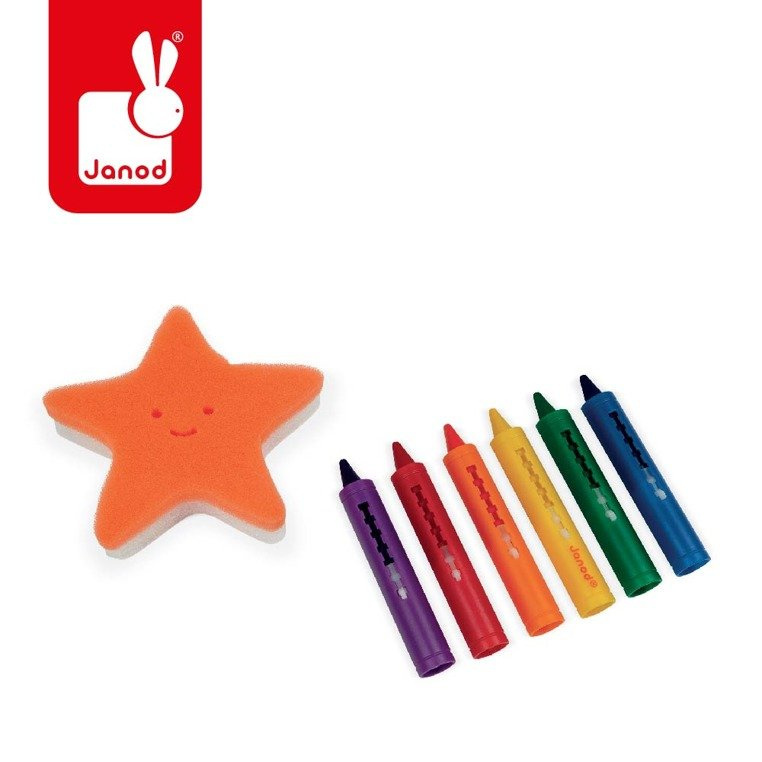 Janod Kredki do kąpieli 6 kolorów z gąbką