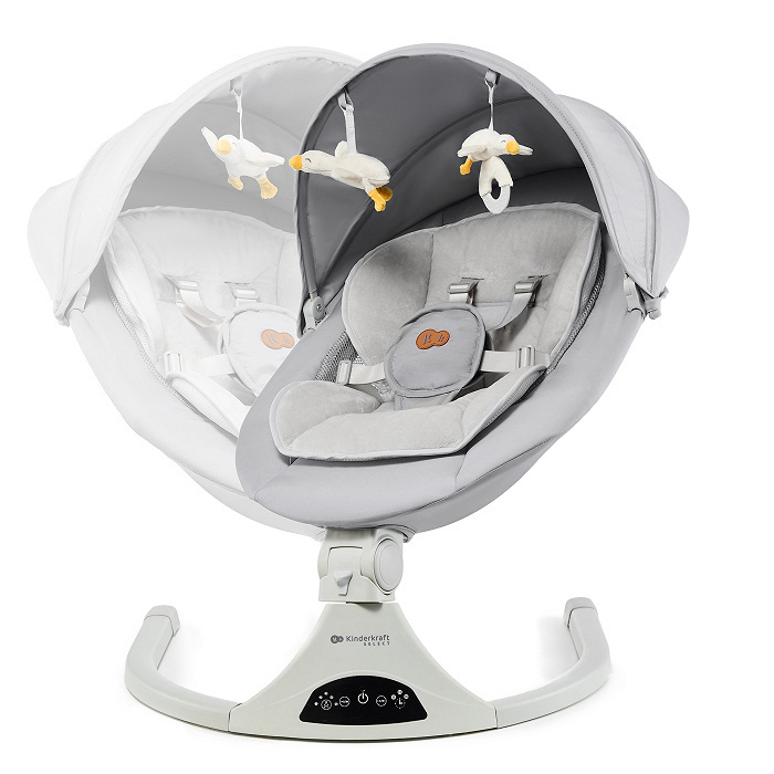 Dzięki 5-stopniowej regulacji prędkości bujania oraz timerowi możesz z łatwością dostosować kołysanie do potrzeb dziecka. Panel dotykowy i pilot umożliwiają proste i intuicyjne sterowanie, a funkcje Bluetooth i USB pozwalają na odtwarzanie Waszej ulubionej muzyki.