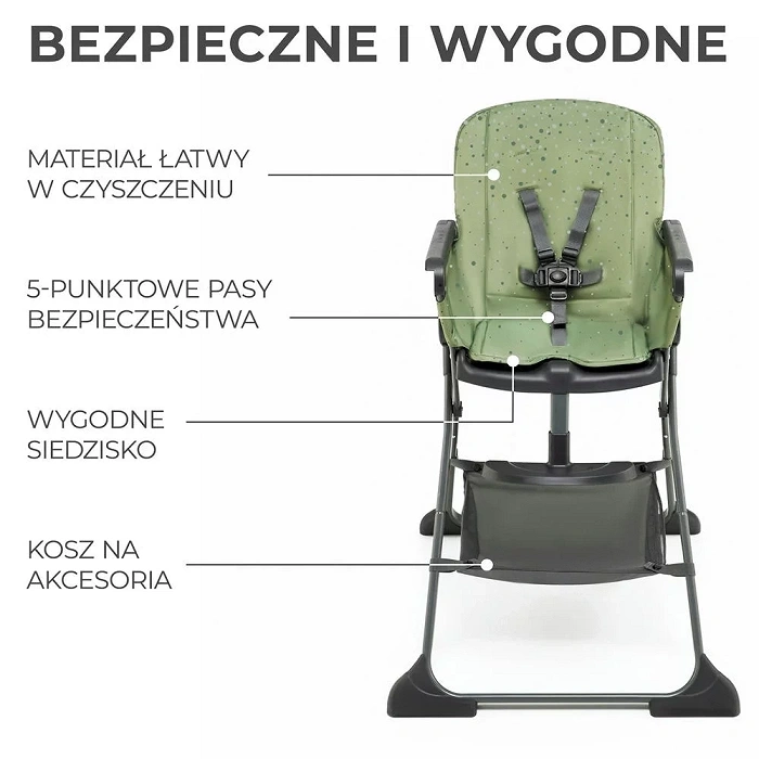 To stylowe, mobilne i łatwe w czyszczeniu krzesełko możesz złożyć już jednym ruchem.Ma kompaktowe wymiary, które ułatwiają przechowywanie krzesełka w domu. To krzesełko do karmienia, zaprojektowane do wygodnego spożywania posiłków.
