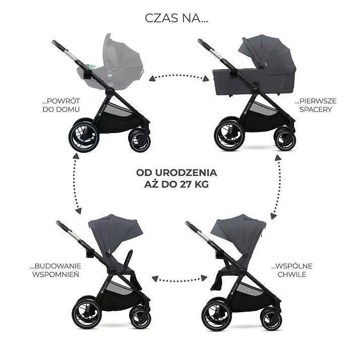 Dzięki możliwości prowadzenia wózka, nawet jedną ręką, łatwości składania spacerówki z siedziskiem w obu kierunkach oraz składania gondoli na płasko, będziesz mógł cieszyć się czasem spędzonym z dzieckiem - tak jak lubicie!