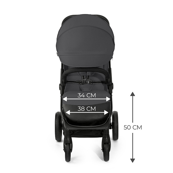 Siedzisko spacerówki jest miękkie i komfortowe, a amortyzacja w połączeniu z nieprzebijalnymi kołami oraz lekkością i zwrotnością czynią z niego prawdziwy wózek do zadań specjalnych.