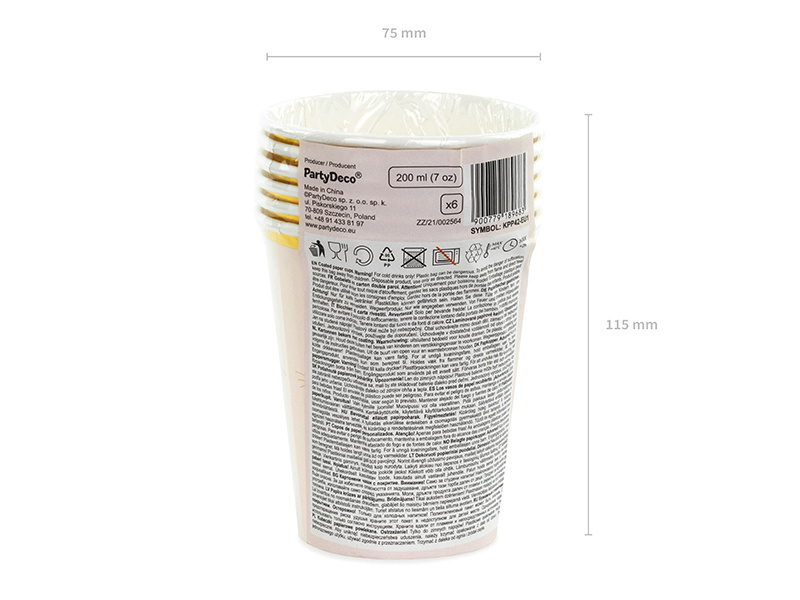 - Kubeczki papierowe Kotek w kolorze jasnoróżowym, pojemność ok. 200 ml. Kubki na napoje zawierają oznaczenia wymagane przez Rozporządzenie wykonawcze Komisji (UE) 2020/2151 z dnia 17 grudnia 2020 r. ustanawiające zasady dotyczące zharmonizowanych specyfika
