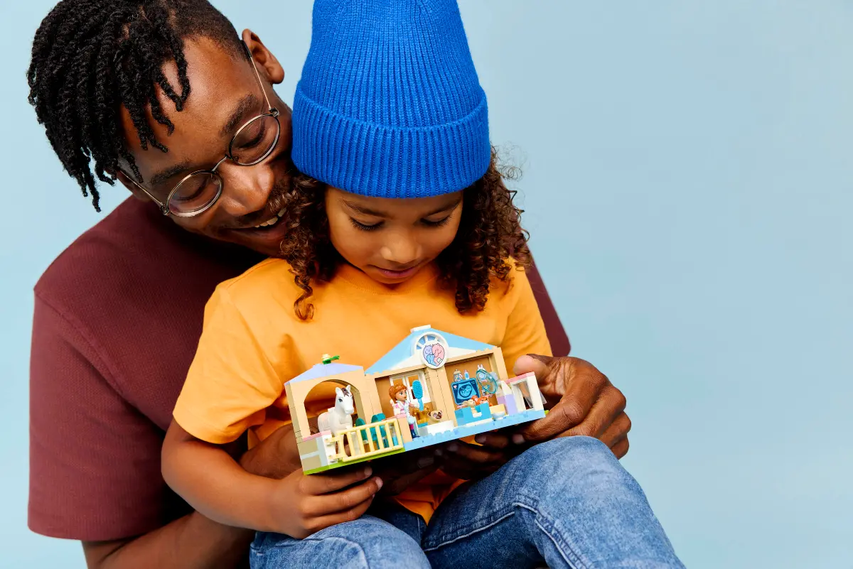 Akcesoria związane z weterynarią, takie jak strzykawka, termometr, notes i długopis, inspirują do zabawy w odgrywanie ról. Dla konia jest siodło, siano, szczotka, marchewka, woda, końska kupa i kask dla jeźdźca. Ten zestaw to świetny prezent dla przedszkolaków, które uwielbiają zestawy ze zwierzątkami. Zabawka LEGO dla czterolatków i starszych dzieci zawiera elementy umożliwiające szybkie rozpoczęcie zabawy w budowanie. Aplikacja LEGO Builder poprowadzi dzieci przez intuicyjne budowanie. Mogą w niej przybliżać i obracać zestawy za pomocą instrukcji 3D oraz śledzić postępy w budowaniu.