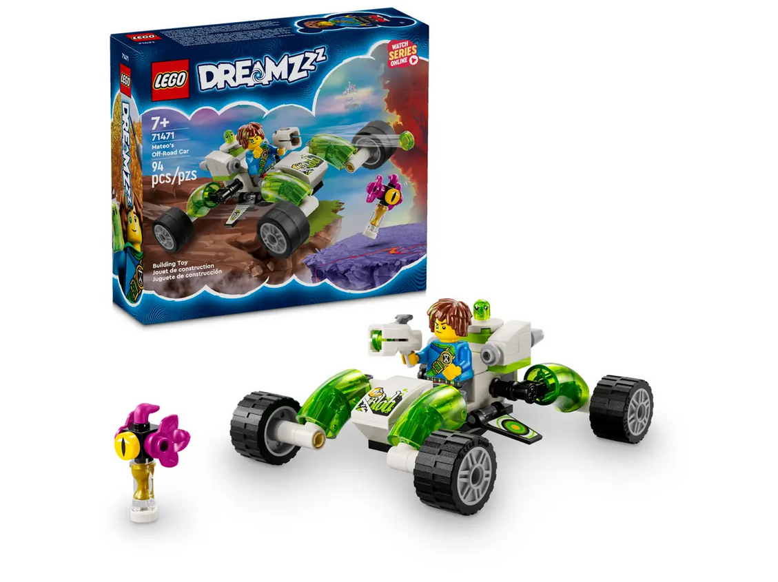Dzieci w wieku od siedmiu lat mogą przenieść się do niesamowitego świata z serialu Lego DREAMZzz dzięki zestawowi Terenówka Mateo 71471. Dzieci muszą pomóc figurkom Mateo i Z-Bloba odzyskać magiczną klepsydrę, budując zabawkowy pojazd w formielekkiego pojazdu terenowego lub helikoptera.