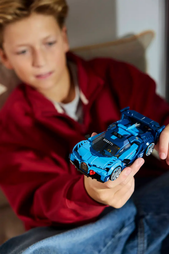 Zestaw zawiera również minifigurkę ubraną w strój Bugatti, którą można umieścić w kokpicie, aby odgrywać wyścigi. Zestawy konstrukcyjne LEGO Speed Champions pozwalają dzieciom i miłośnikom motoryzacji tworzyć repliki kultowych pojazdów Dzieci mogą budować z pewnością siebie, korzystając z aplikacji LEGO Builder, w której można powiększać modele, obracać je w 3D i śledzić postępy dzięki prostym instrukcjom cyfrowym.
