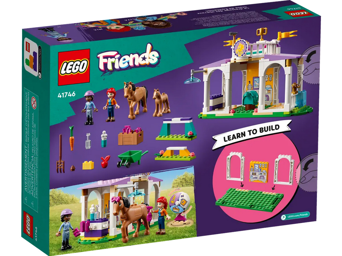 Dwie minilaleczki i akcesoria - zestaw obejmuje postacie LEGO Friends - Aliyi i Mii - a także konia, źrebię i mnóstwo akcesoriów do pielęgnacji koników.