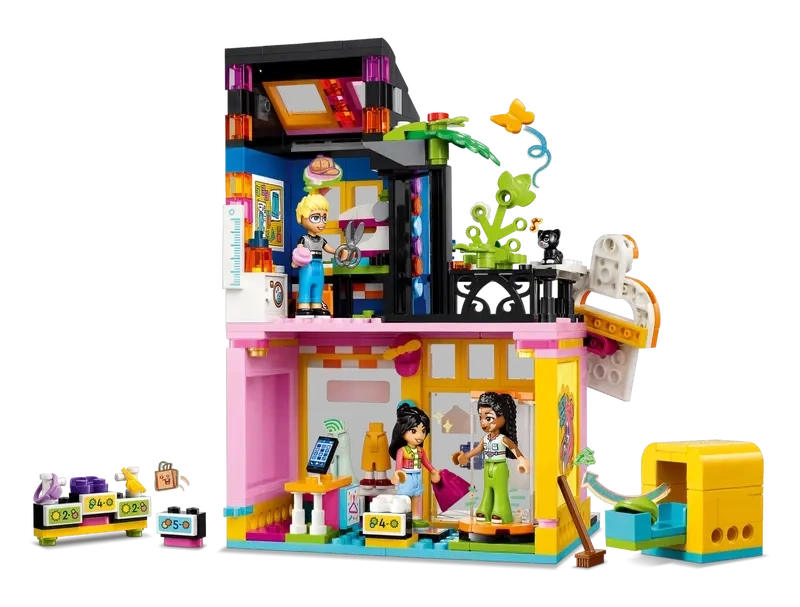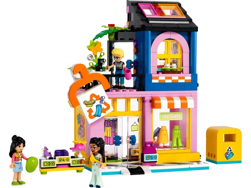 Zestaw LEGO® Friends Sklep z używaną odzieżą — zestaw wspierający rozwój społeczno-emocjonalny zawiera sklep do zbudowania z warsztatem, trzy minilaleczki, figurkę kota oraz mnóstwo modnych akcesoriów dla dzieci w wieku od sześciu lat.