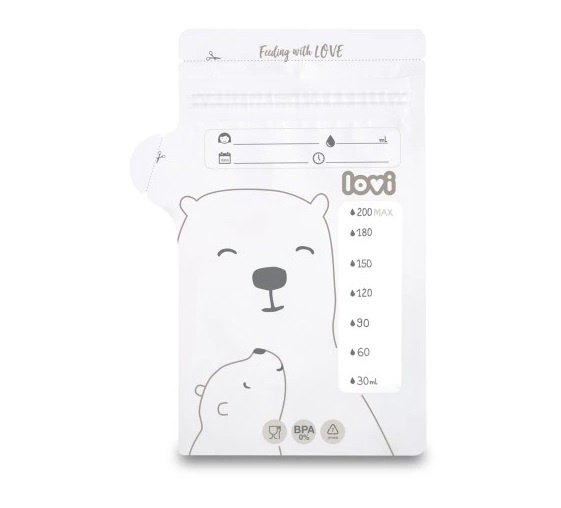 Dzięki szczelnemu, podwójnemu zamknięciu woreczki do przechowywania pokarmu LOVI doskonale sprawdzą się i w domu, i w podróży, a profilowany dzióbek ułatwi nalewanie mleka do butelki. Mogą być także używane jako woreczki do mrożenia mleka.