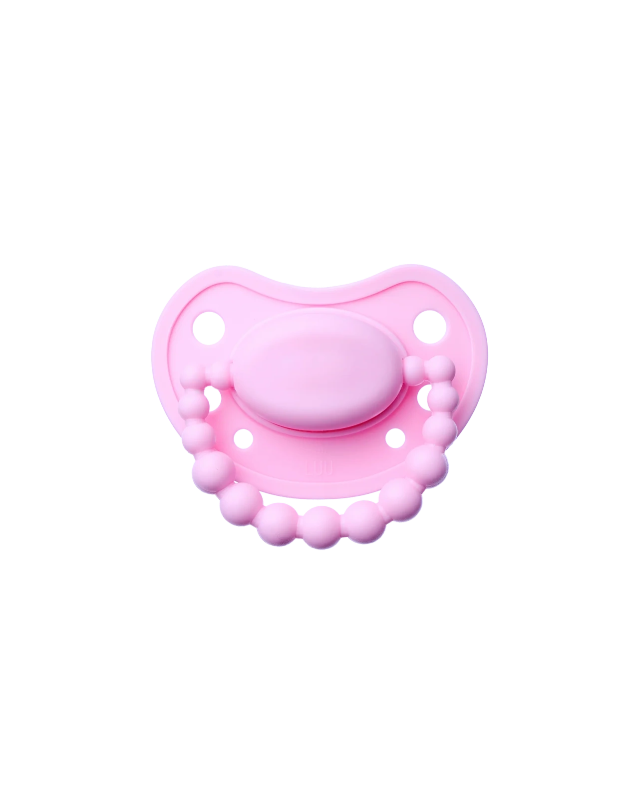 • Jego konstrukcja ma za zadanie minimalizować niekorzystny wpływ na prawidłowy rozwój jamy ustnej, a także ułatwiać oddychanie i przełykanie śliny podczas korzystania ze smoczka.