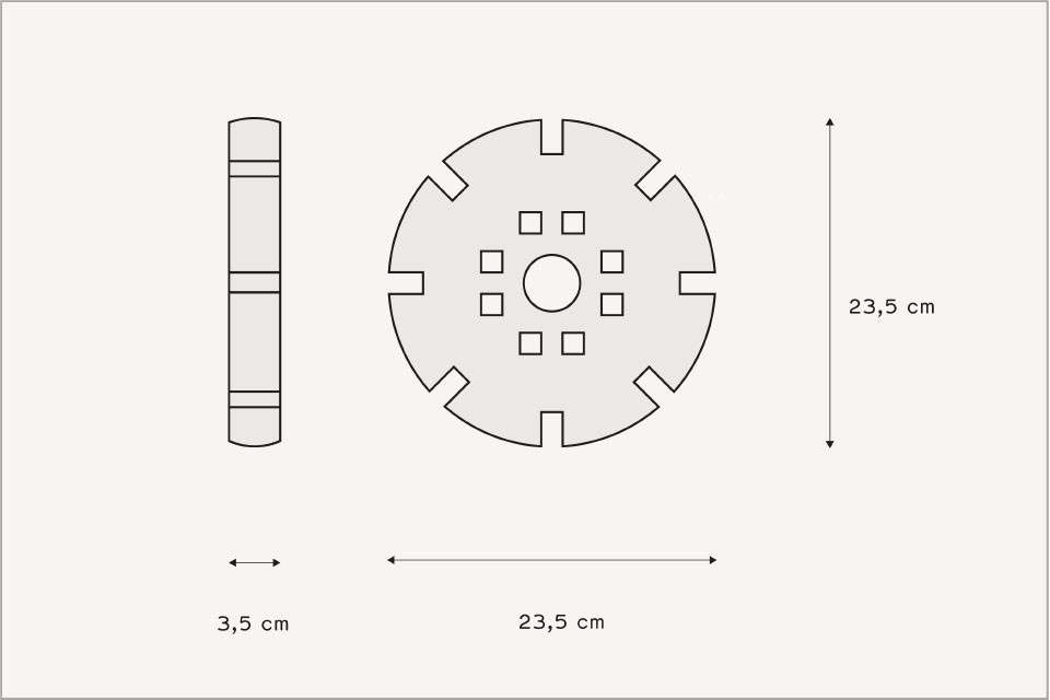 Zestaw zawiera 36 klocków, średnica każdego z nich to 24 cm.