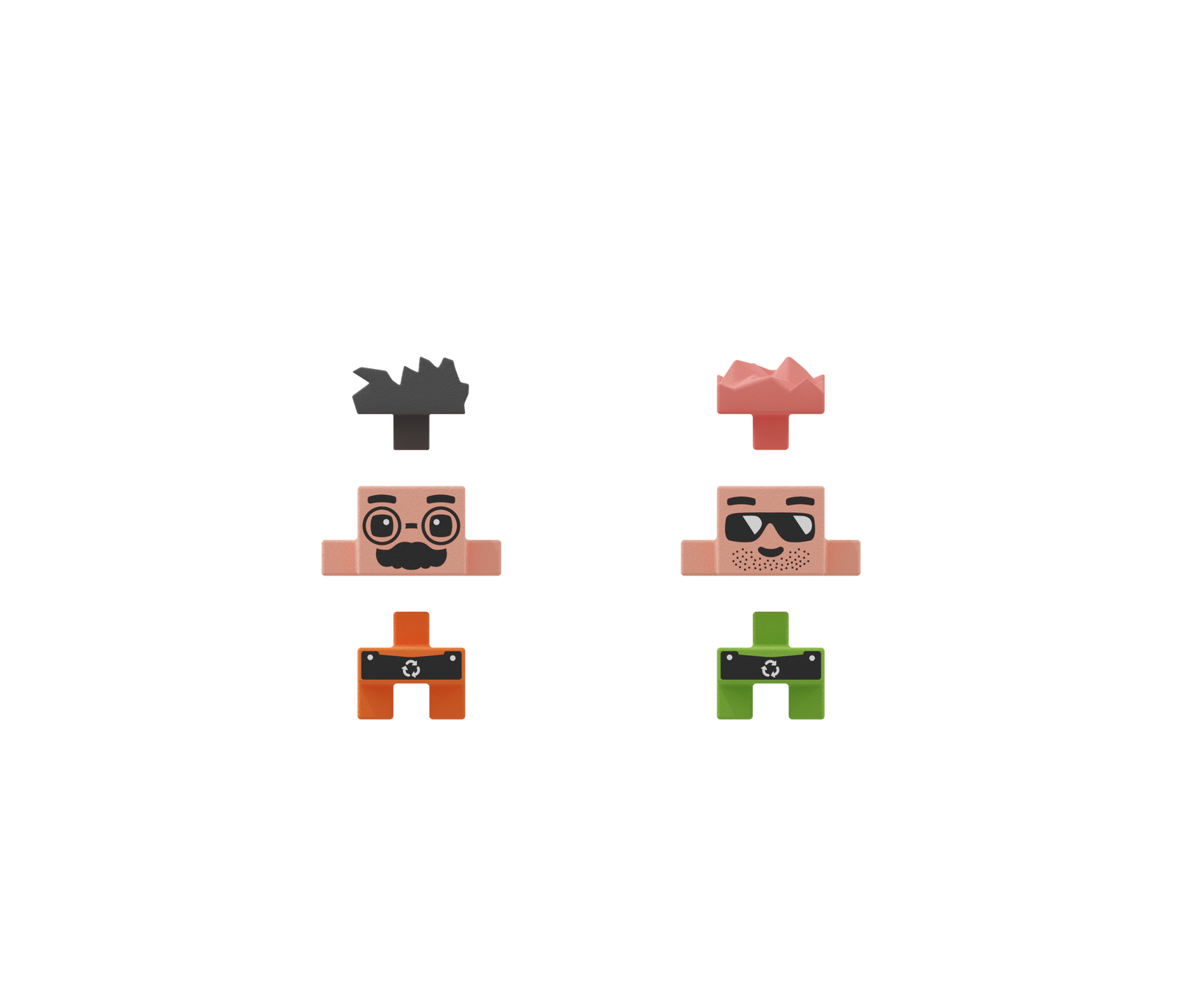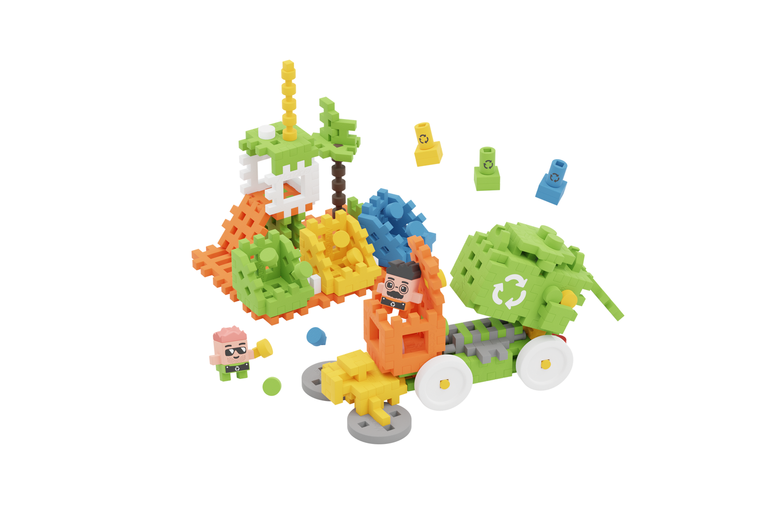 • Klocki i opakowania wytworzone z materiałów odnawialnych w recyklingu