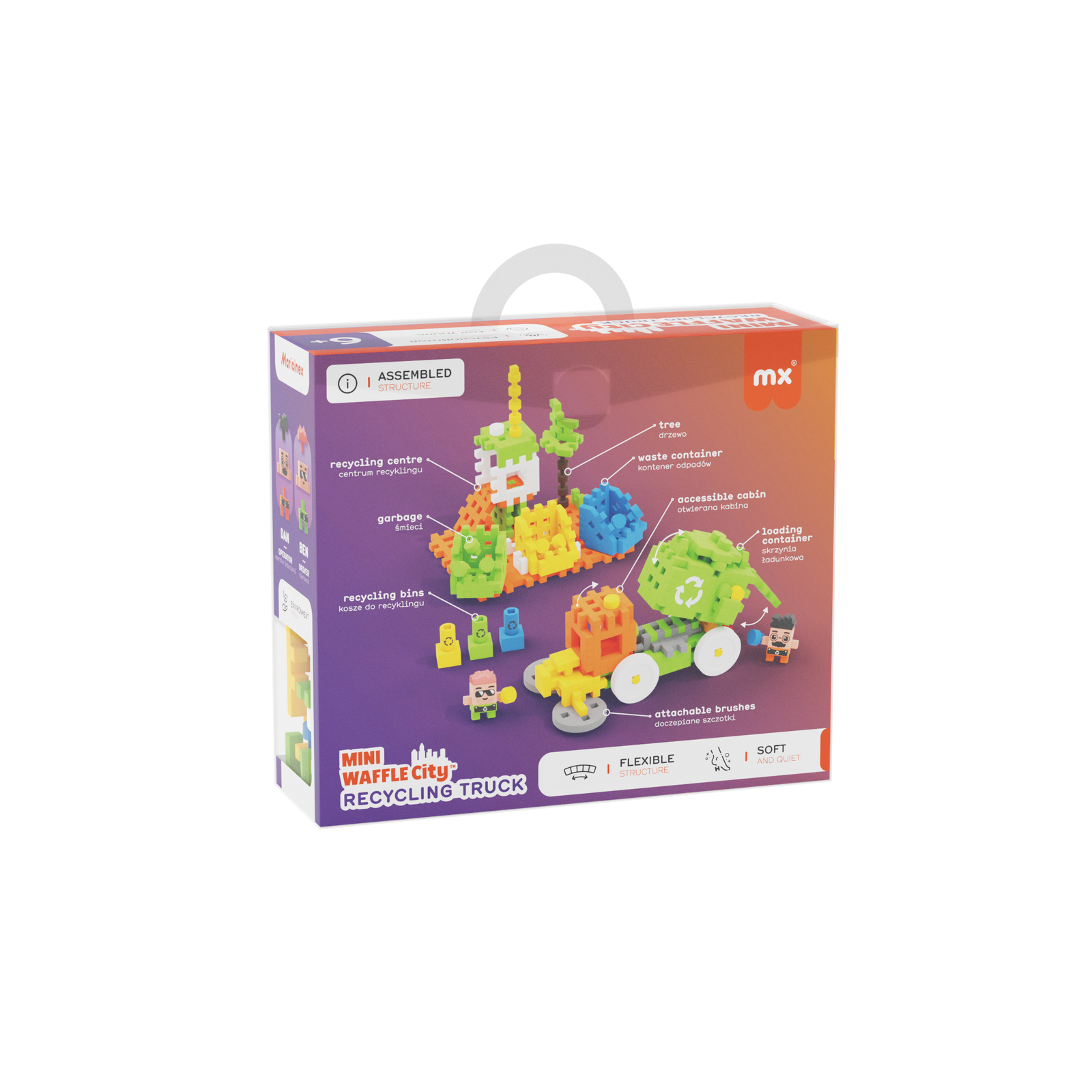 Zabawa elastycznymi, przyjemnymi w dotyku klockami Mini Waffle doskonale rozwija motorykę małą dziecka, a budowanie zestawu według instrukcji to efektywne ćwiczenie logicznego myślenia.