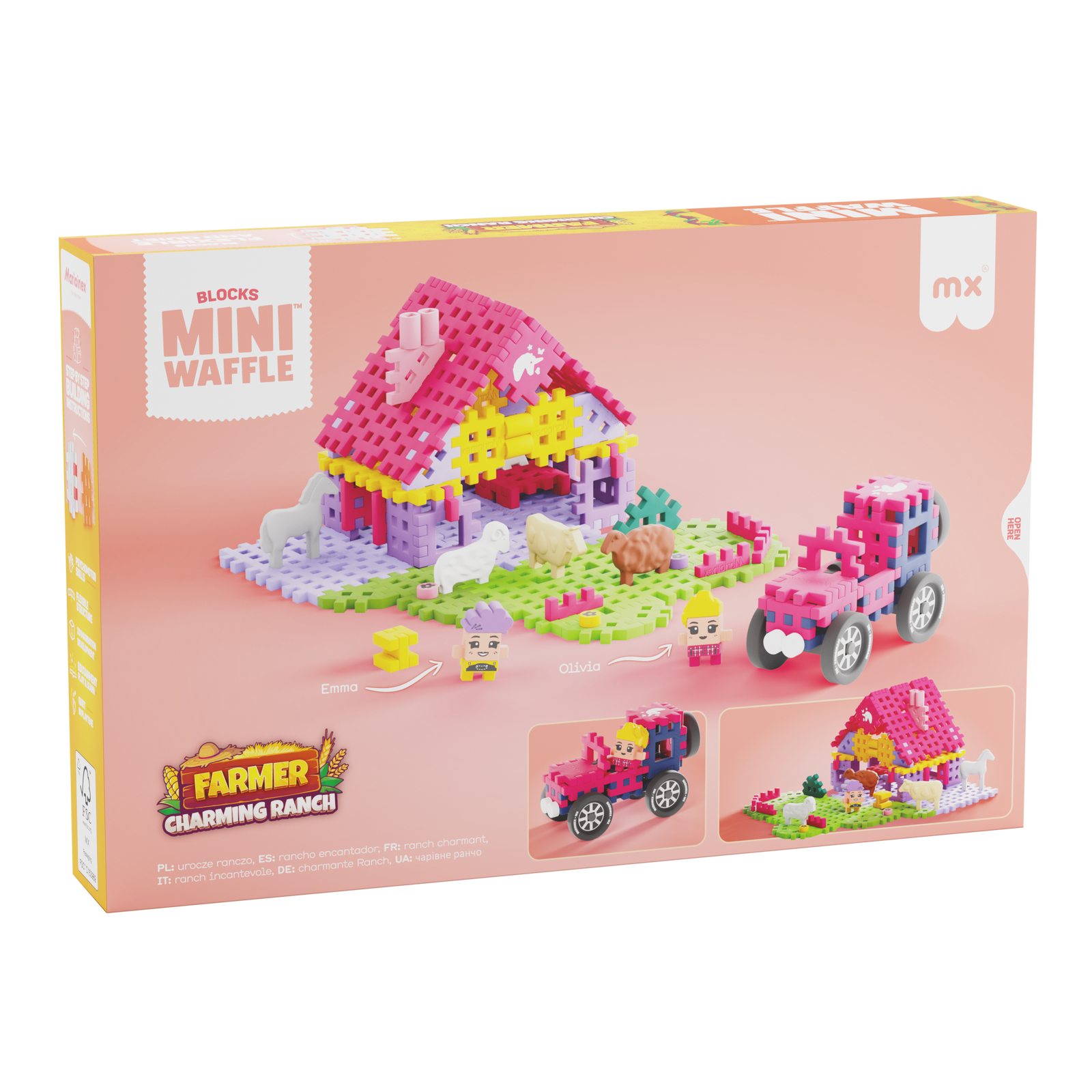 Zestaw Mini Waffle Farmer – Urocze Ranczo to idealna propozycja dla dzieci, które kochają naturę, zwierzęta i kreatywną zabawę. Zbuduj kolorowy domek, samochód terenowy, zieloną łąkę do wypasu i baw się uroczymi zwierzątkami. Emma i Olivia czekają, by wspólnie z Tobą zadbać o każde zwierzątko i stworzyć swoje wymarzone miejsce na ziemi.