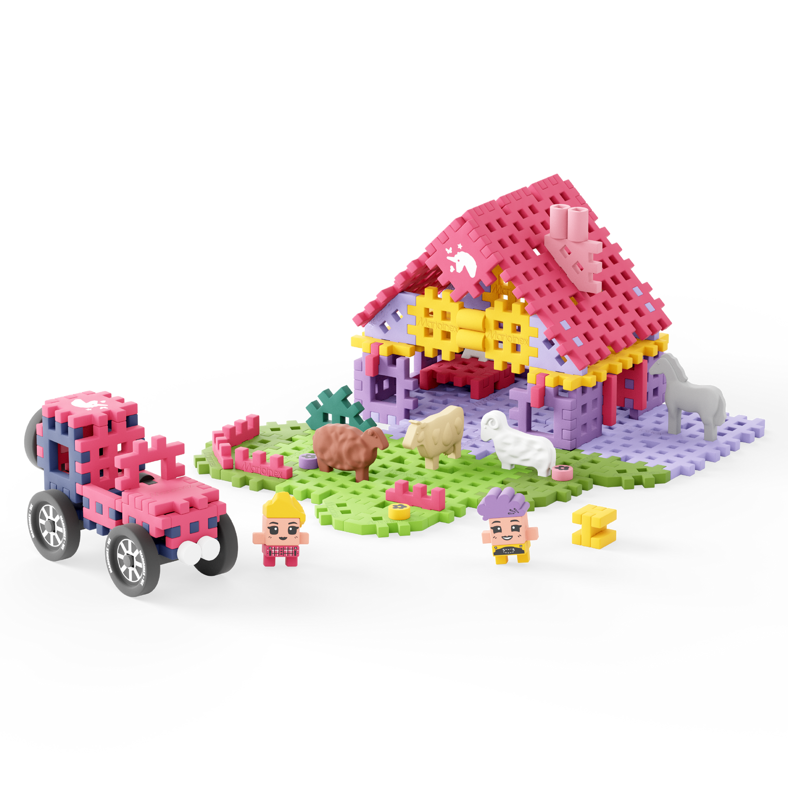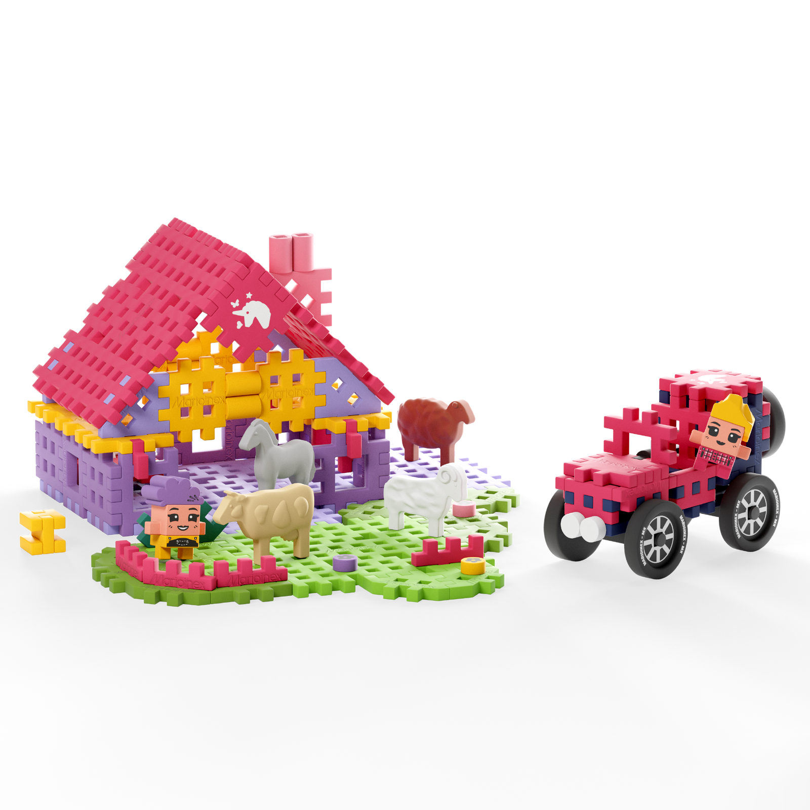 Z zestawu można stworzyć funkcjonalne ranczo z domkiem, pojazdem, trawnikiem oraz uroczymi zwierzątkami. Aż 112 elastycznych, kolorowych elementów daje niezliczone możliwości zabawy i budowania. Dzięki temu każde dziecko może stworzyć własny kawałek sielankowej farmy.