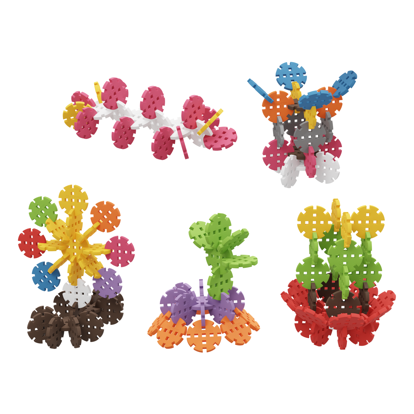 - Mini Koła Konstrukcyjne umożliwiają konstruowanie fantastycznych kształtów i budowli według dołączonych do zestawu obrazkowych inspiracji.