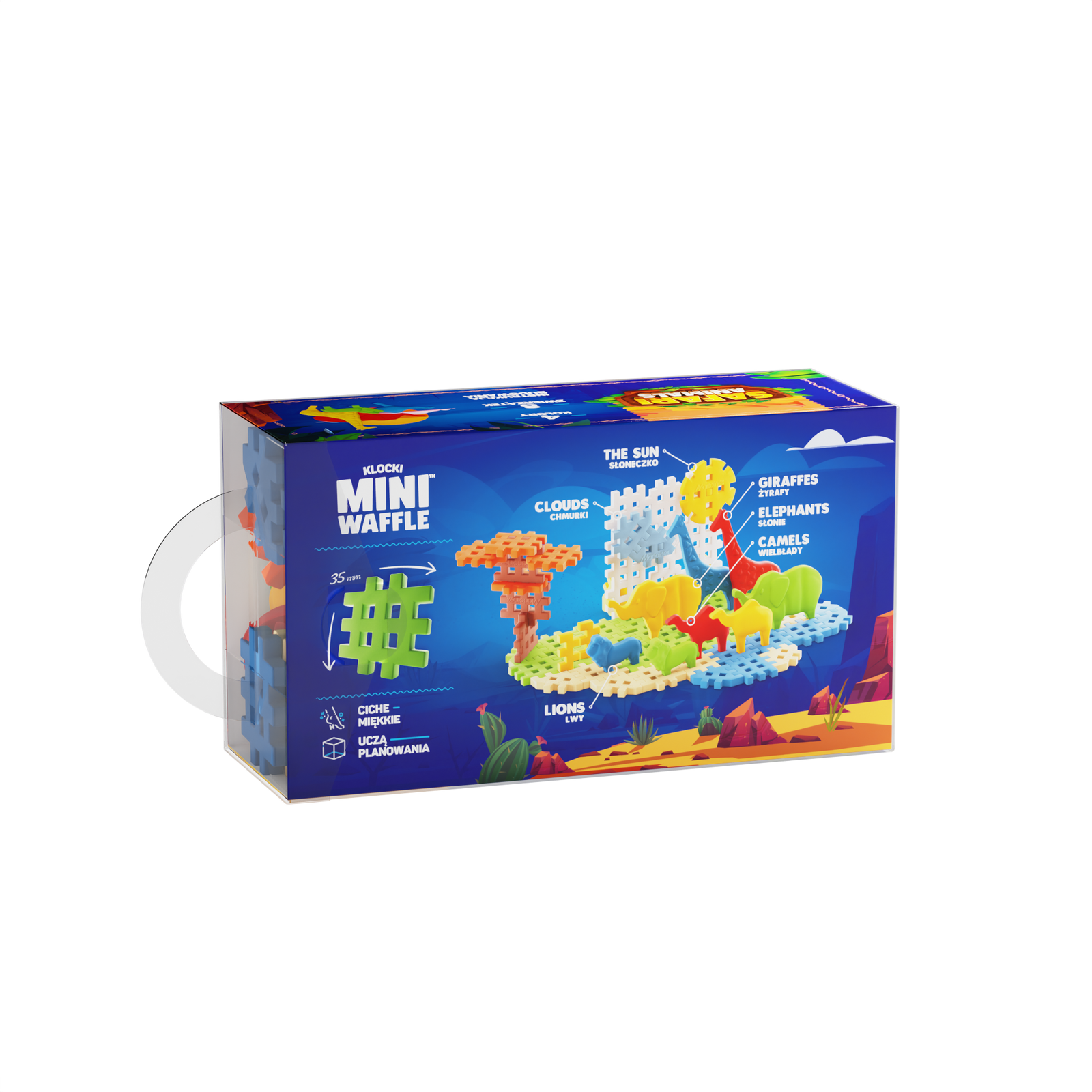 Zestaw Mini Waffle Animals Safari 50 el. to idealny wybór dla wszystkich miłośników zwierząt i tych co pragną przenieść się do egzotycznego świata pełnego fascynujących przygód!