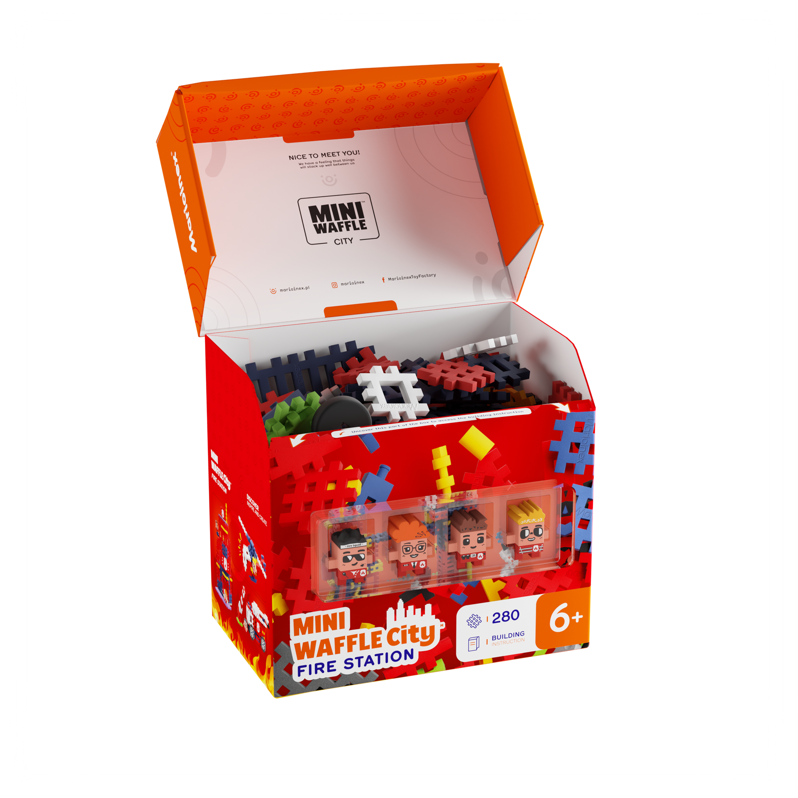 Połącz zestaw z innymi z serii Mini Waffle City i powiększ miasteczko o dużą remizę strażacką. Złóż zestaw według instrukcji lub uruchom wyobraźnię swojego dziecka i skonstruuj z nim własną, unikalną budowlę!