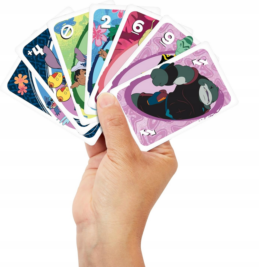 • Gracze UNO pokochają motywy inspirowane postaciami Disneya Lilo i Stitch.