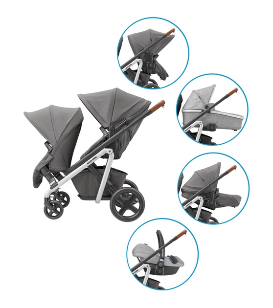 Wózek Lila łatwo przekształcisz w rozbudowany system podróżny dla dzieci z niewielką różnicą wieku.