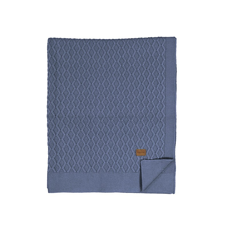 Kocyk z wypukłym dzianinowym ściegiem, miły w dotyku, idealny na spacer, do łóżeczka, w domu, czy do fotelika samochodowego.