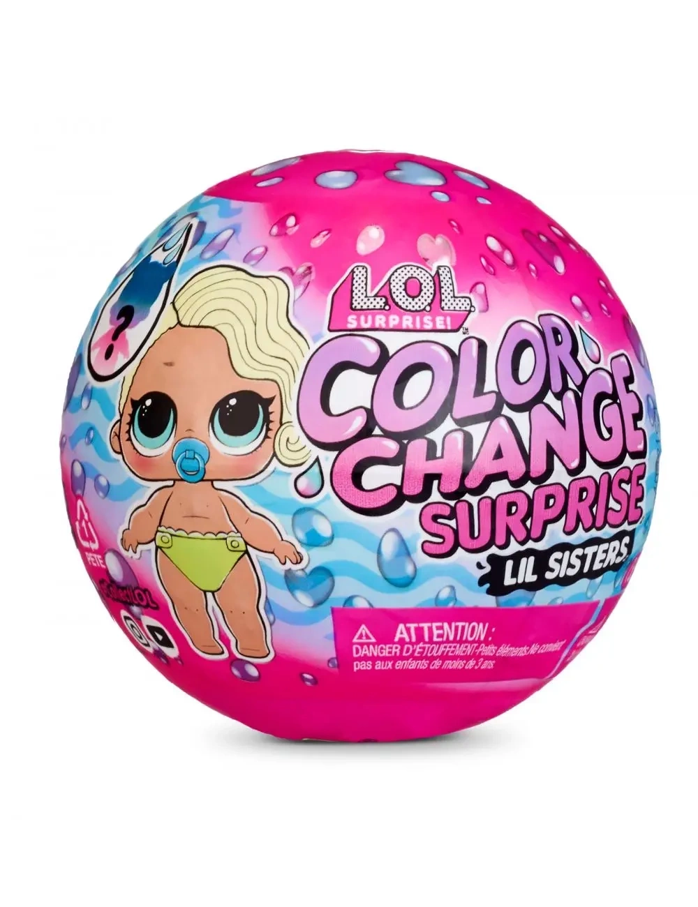 Malutka urocza siostrzyczka nie może się doczekać, aż dołączy do reszty laleczek L.O.L Surprise. Lalka jak i kula zmieniają kolor pod wodą.