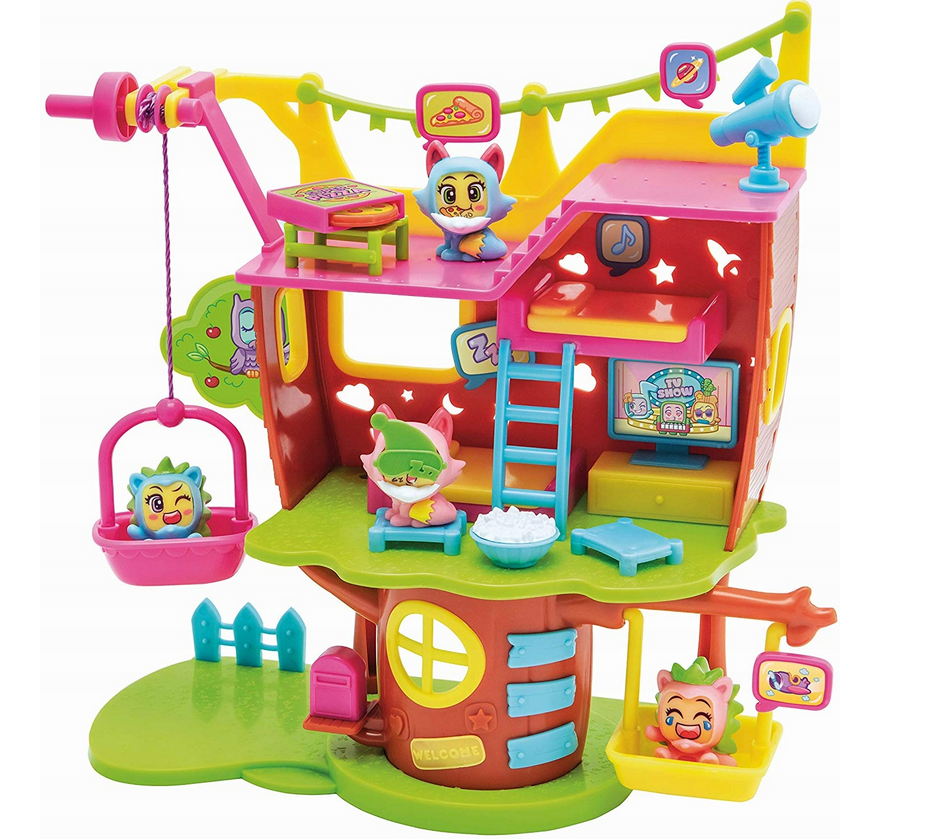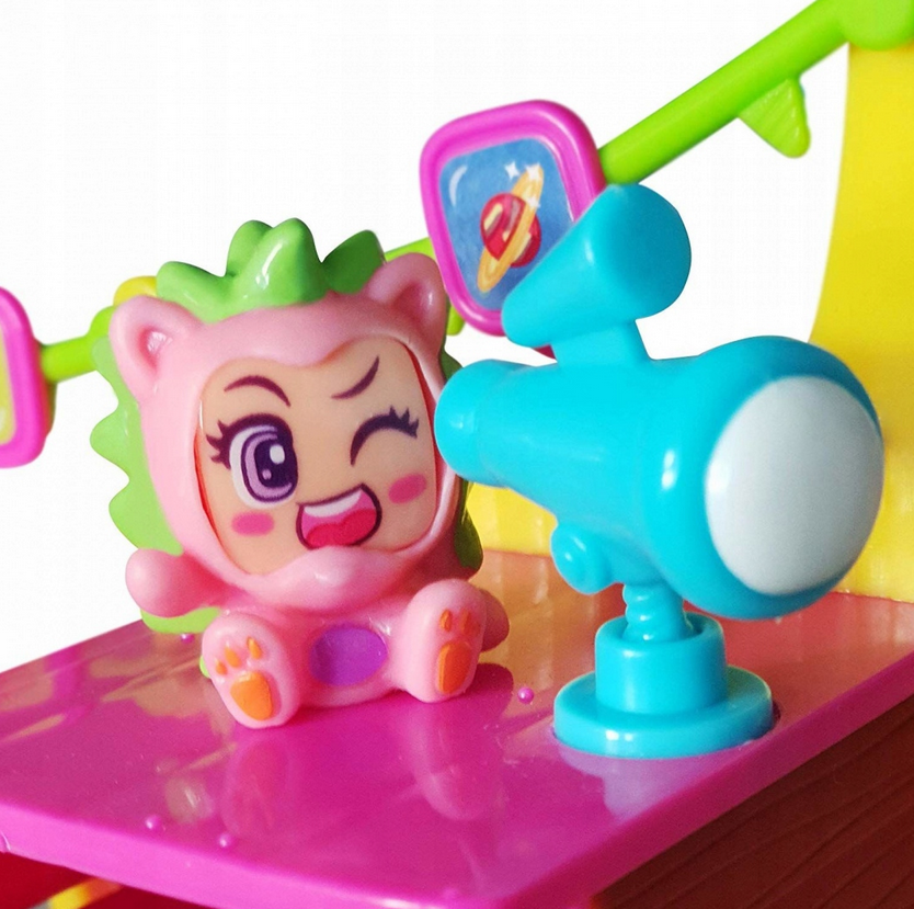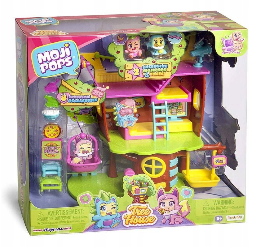Windę obsługuje się korbką z linką. W zestawie z domkiem znajdują się także dwie ekskluzywne, dostępne tylko w tym zestawie figurki MojiPops oraz akcesoria dla nich - stolik z taboretem, pudełko z pizzą, miska z popcornem i dwie czapeczki.