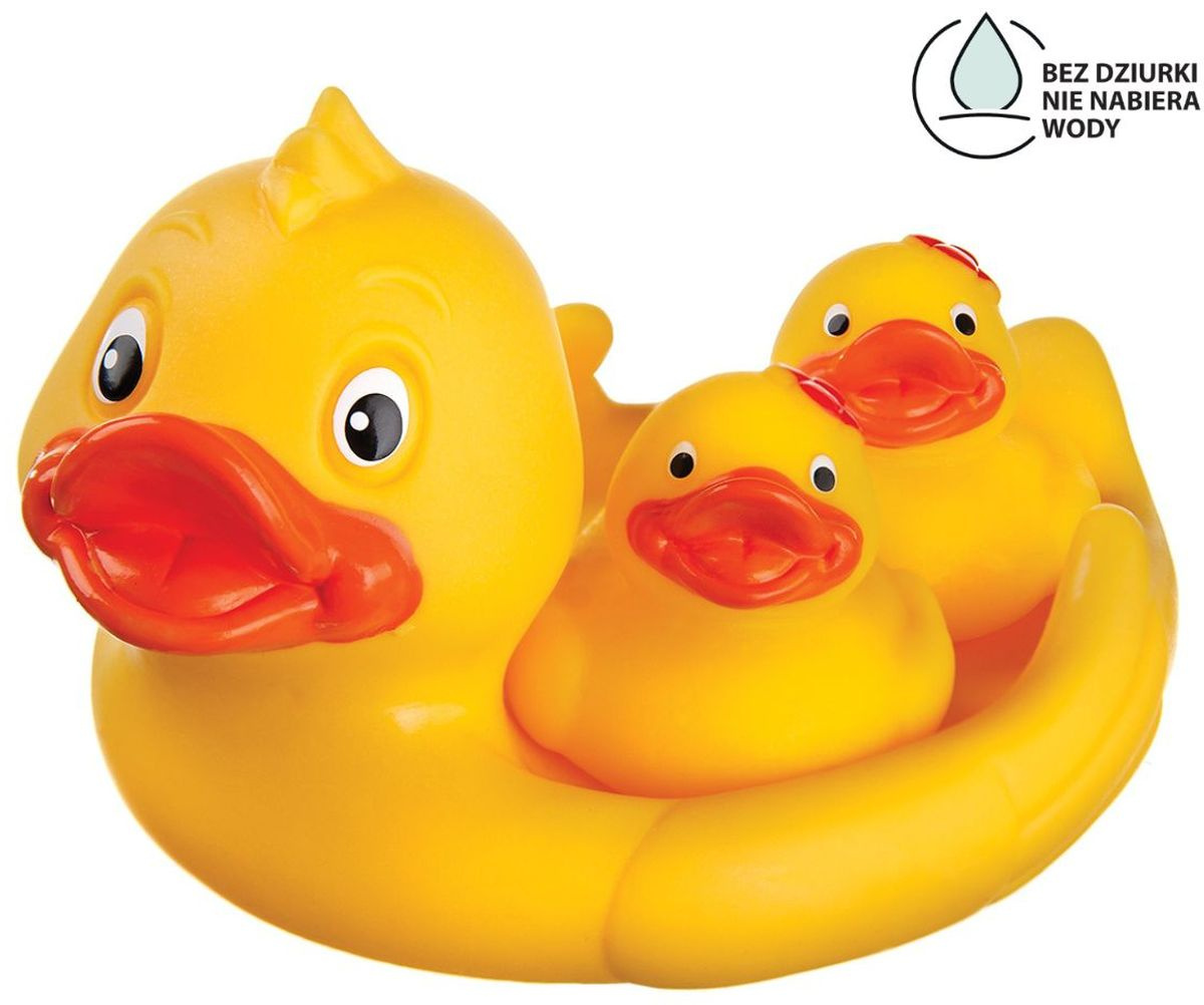 Kaczki, które znajdują się w zestawie zostały wyprodukowane bez dziurki, co oznacza, że dostanie się wody do wnętrza zabawki jest niemożliwe...