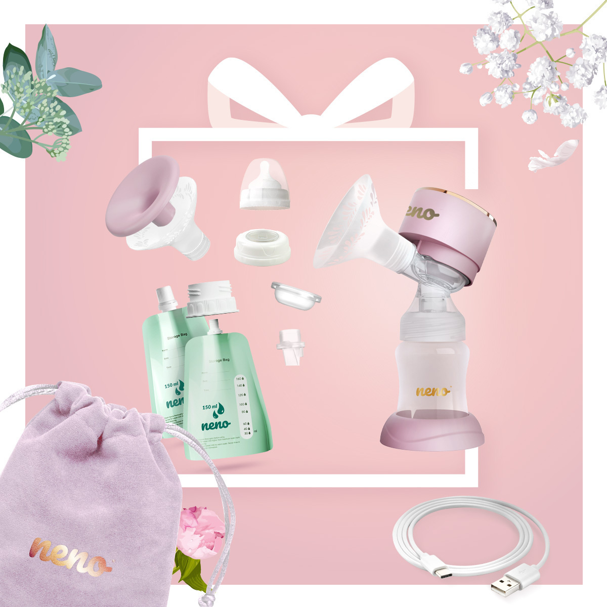 W zestawie z laktatorem Neno Perfetto otrzymujesz odporną na zarysowania butelkę wraz z podstawką, smoczkiem i zatyczką, welwetowy woreczek do przechowywania, lejki w dwóch rozmiarach: SLIM 21 mm i MEDIUM 24 mm, a także dwa wygodne woreczki do przechowywania pokarmu wraz z konektorem, które możesz także dokupić dodatkowo w zestawach po 20 sztuk. Dzięki temu rozwiązaniu możesz odciągać pokarm bezpośrednio do woreczka, aby móc go łatwo zamrozić.