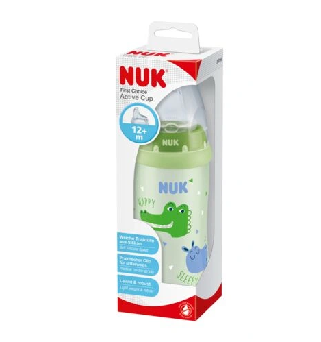 Kubek kompatybilny z akcesoriami do butelek NUK First Choice. Wyposażony jest w osłonkę i praktyczny klips.