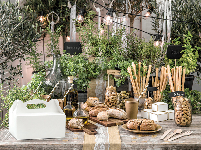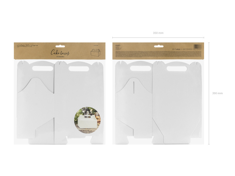 • Ozdobne pudełka na ciasto z papieru w kolorze białym, set zawiera 10 sztuk, wymiary pudełka po złożeniu ok. 19x14x9 cm. (1 op. / 10 szt.)