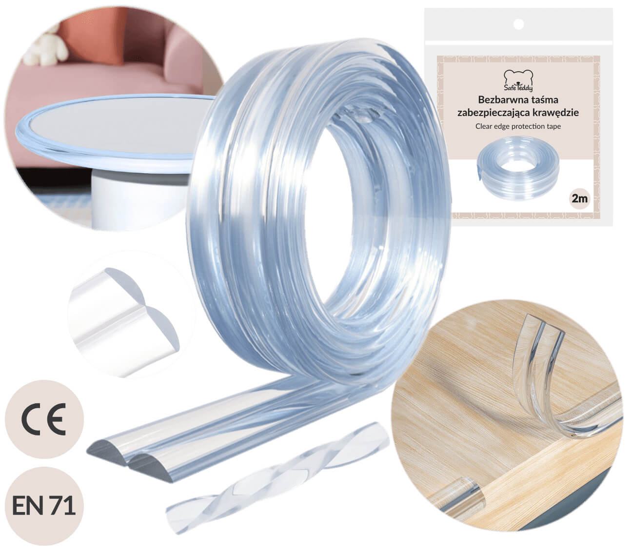 - Przezroczysta taśma zabezpieczająca krawędzie, meble, kanty 2m SafeTeddy