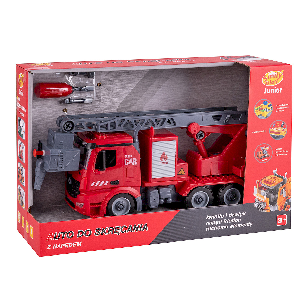 - Samochód z możliwością rozkręcania i skręcania. Auto strażackie z dźwiękiem , światłem i psikawką na wodę to doskonały pomysł na prezent dla dziecka.