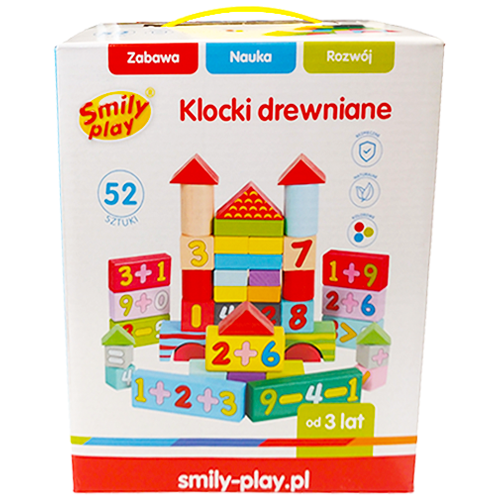 Klocki wykonane są z trwałego drewna i pomalowane nietoksycznymi farbami, zgodnymi z normami bezpieczeństwa.