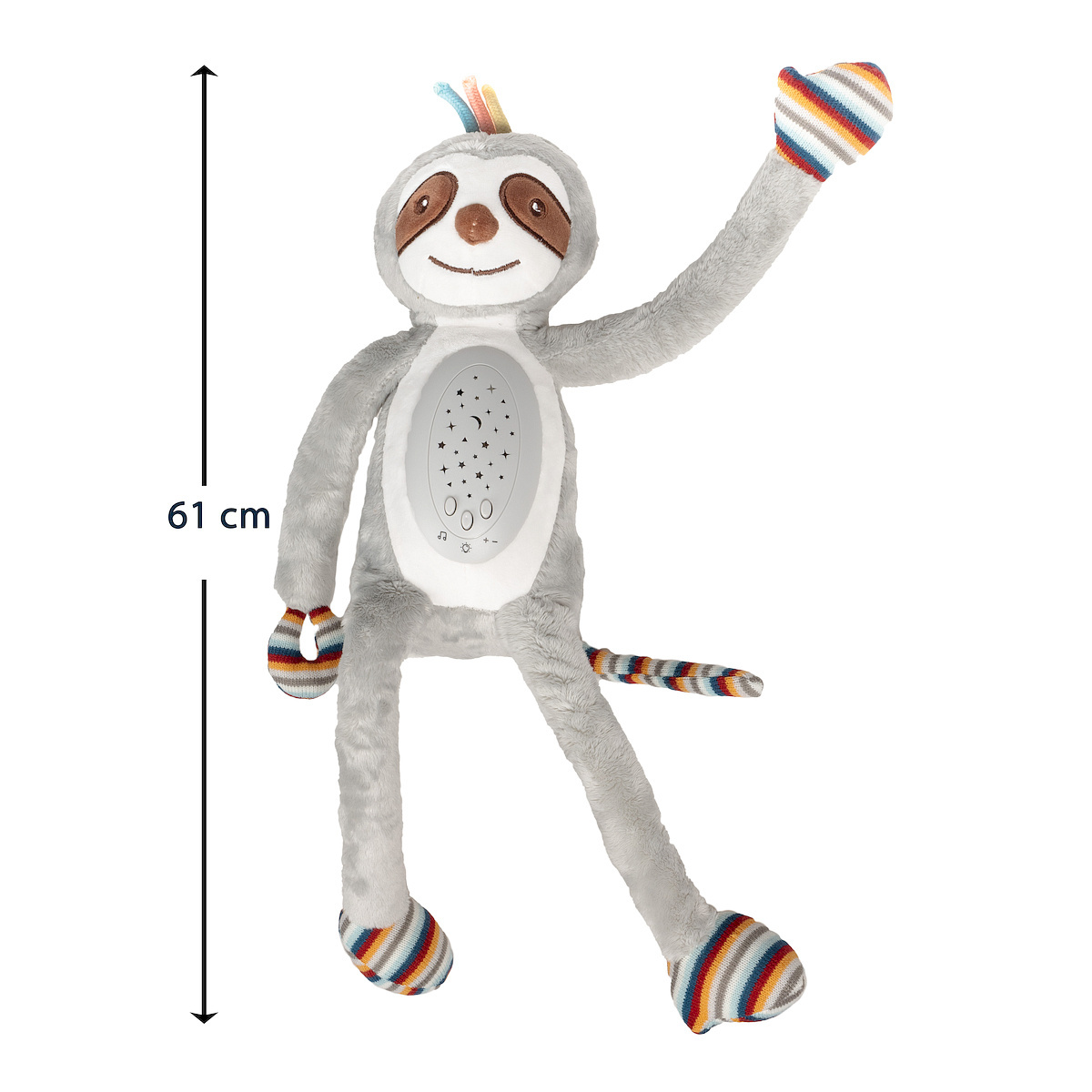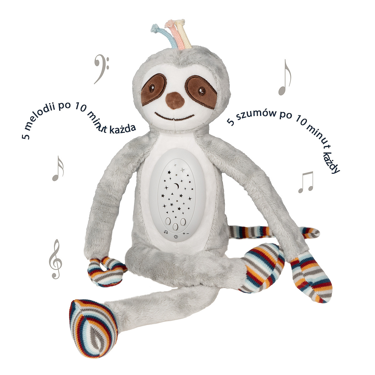 • Przytulanka: Leniwiec to nie tylko szumiś, ale także przytulanka, która może stać się ulubionym towarzyszem dziecka. Dżwięki można przyciszyć lub pogłośnić lub włączyć sam projektor, który świeci na czerwono, zielono lub żółto.