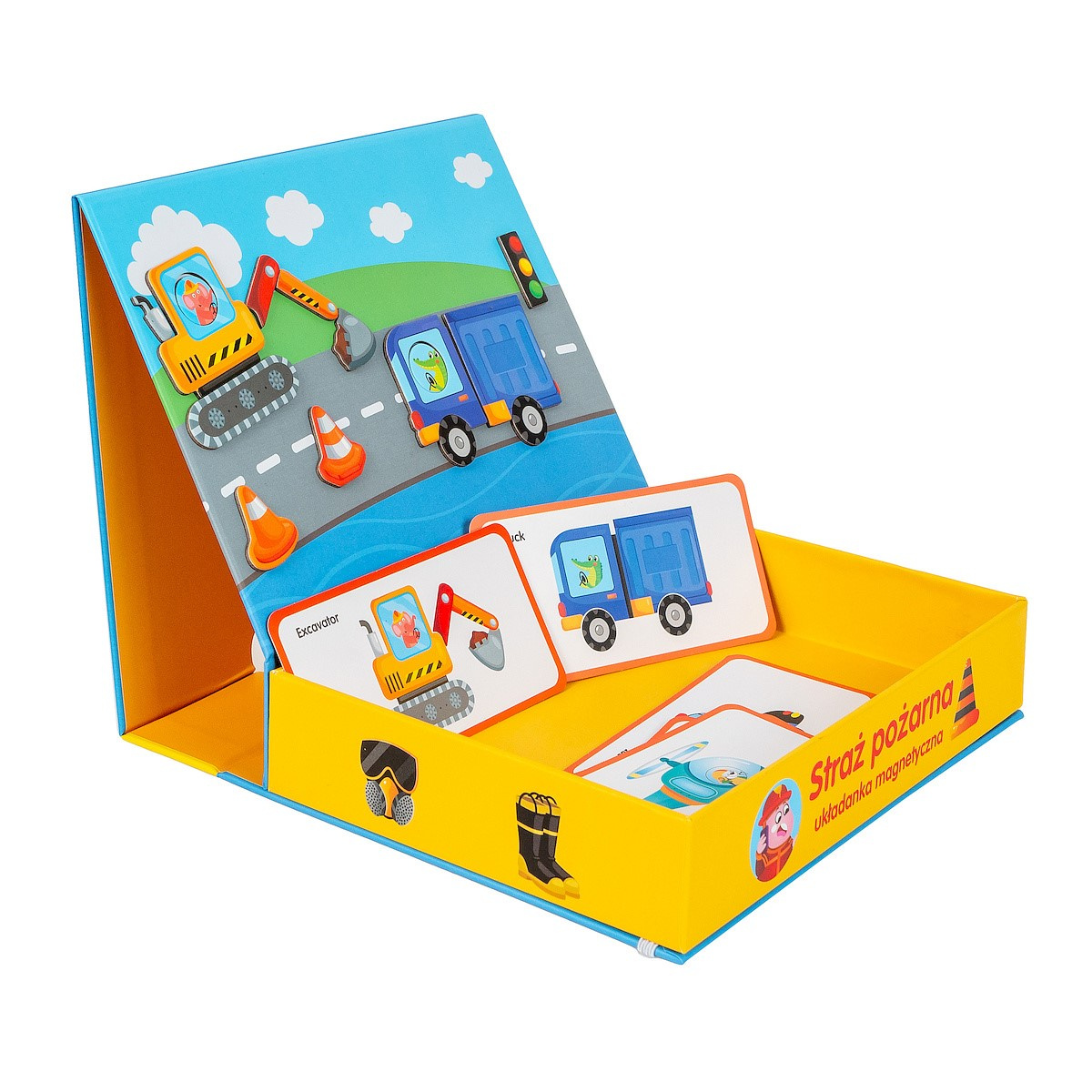 Układanka magnetyczna Pojazdy uczy koncentracji i logicznego myślenia. Poprawia koordynację ręka oko.