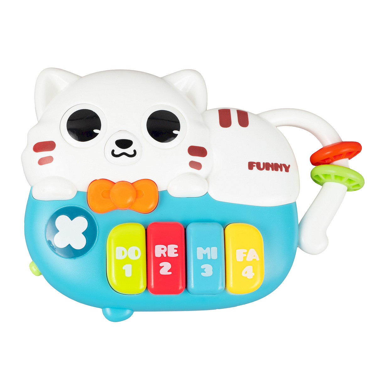 Pianinko posiada wyłącznik na uchu, po włączeniu gra wesołe melodyjki, wydaje różne odgłosy i świeci światełkiem . Dziecko może również tworzyć własne kompozycje za pomocą przycisków DO RE MI FA . Przyjemna kolorystyka.