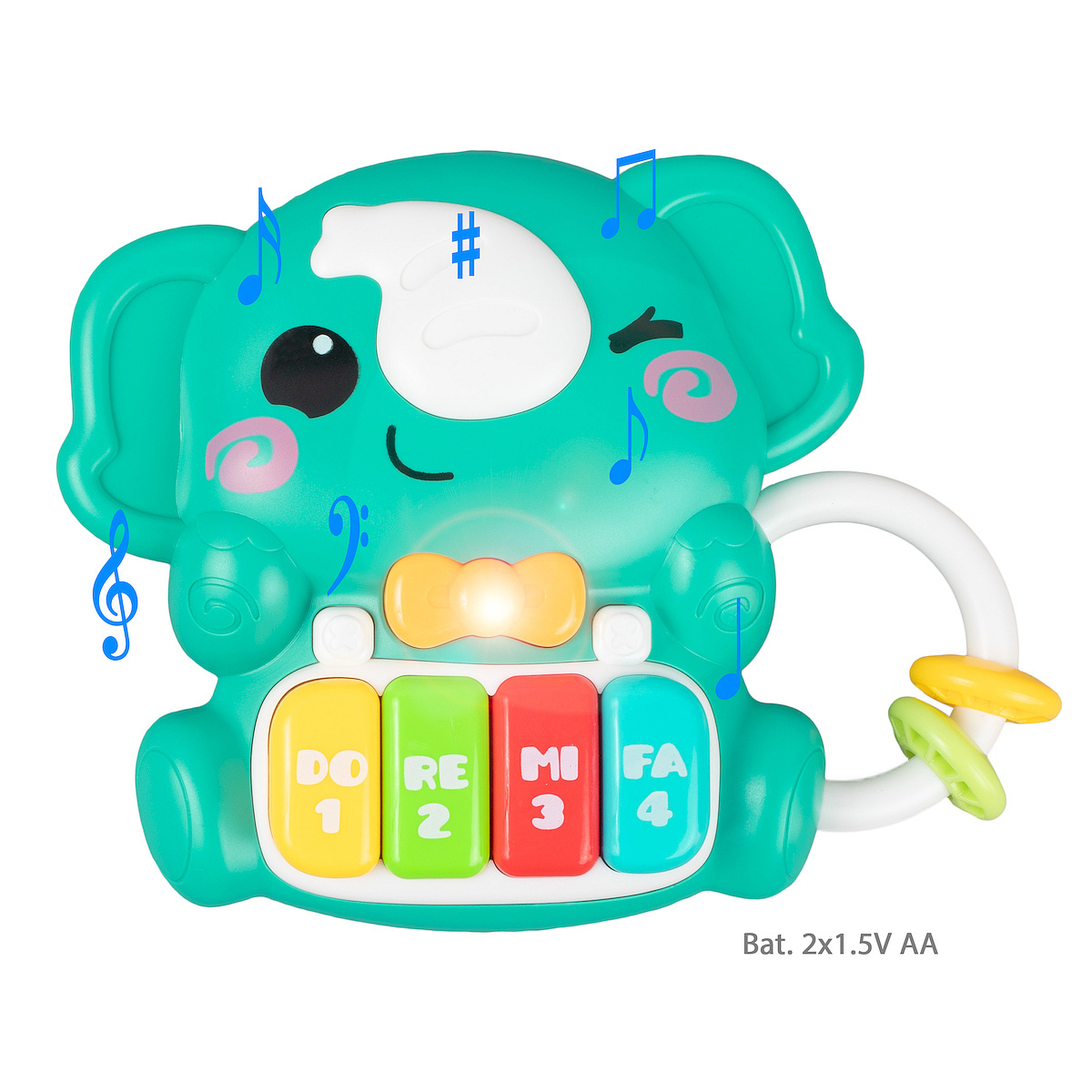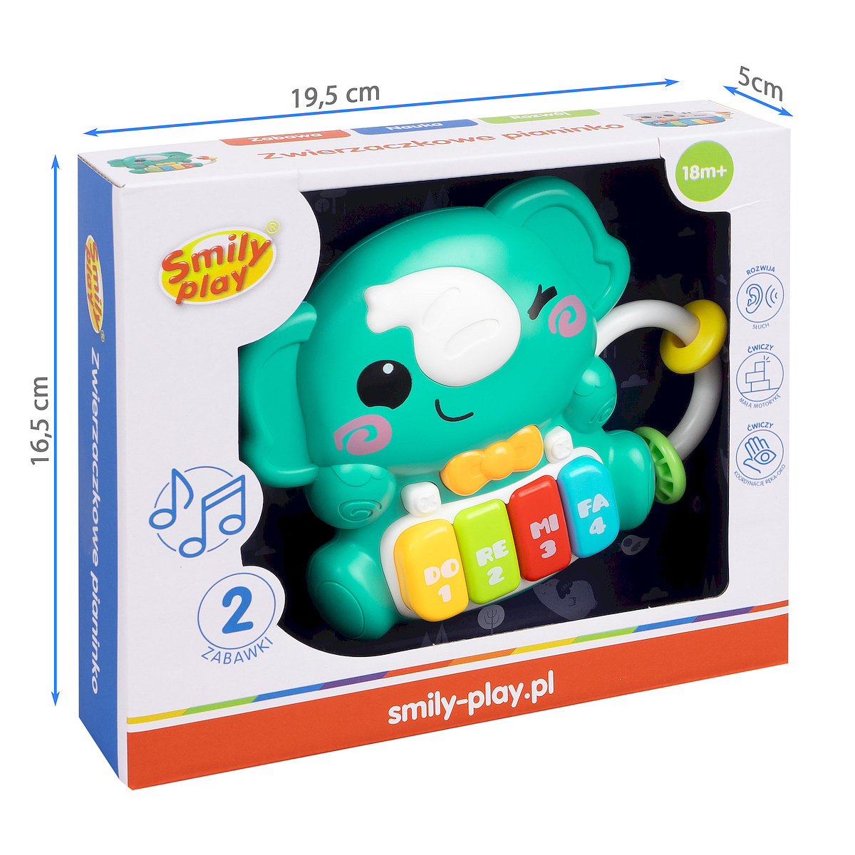 Pianinko posiada wyłącznik na uchu, po włączeniu gra wesołe melodyjki, wydaje różne odgłosy i świeci światełkiem . Dziecko może również tworzyć własne kompozycje za pomocą przycisków DO RE MI FA . Przyjemna kolorystyka.