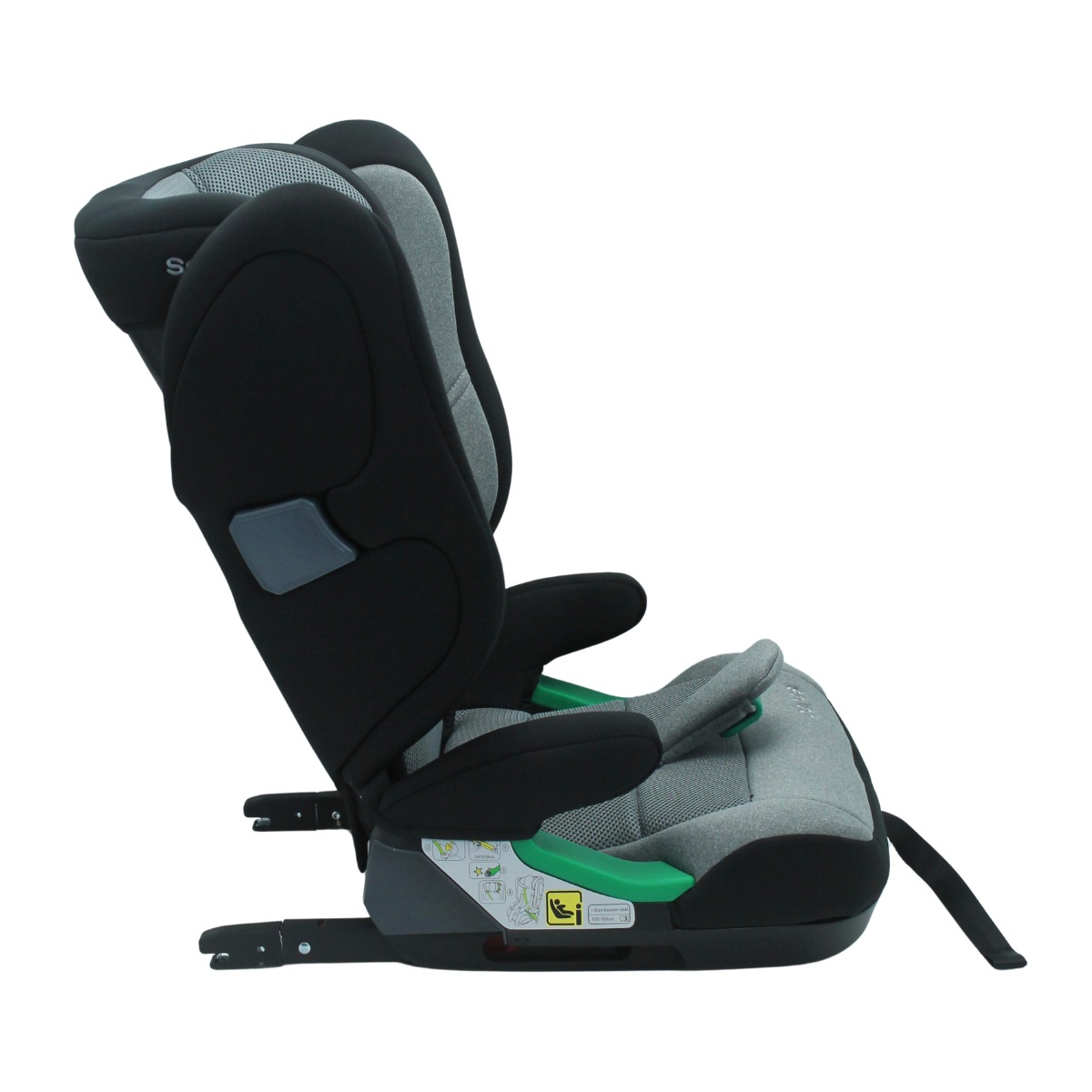 • Automatycznie wysuwany system ISOFIX – szybki, intuicyjny montaż bez zbędnego wysiłku, dzięki dźwigni umieszczonej z przodu fotelika.