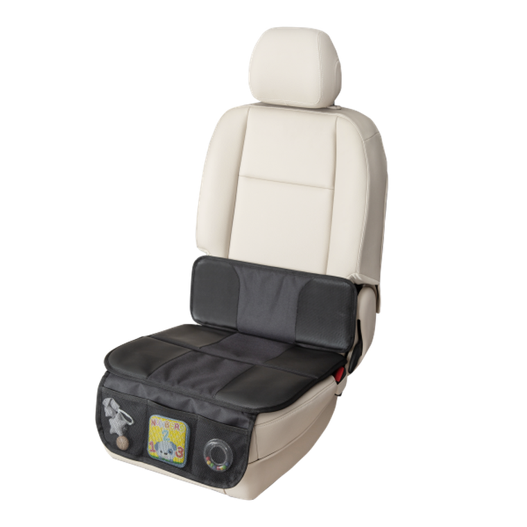 Mata ochronna Sorino Compact wykonana z wytrzymałych, wodoodpornych materiałów, skutecznie chroni siedzenia przed otarciami, zabrudzeniami i wgnieceniami spowodowanymi przez fotelik dziecięcy.