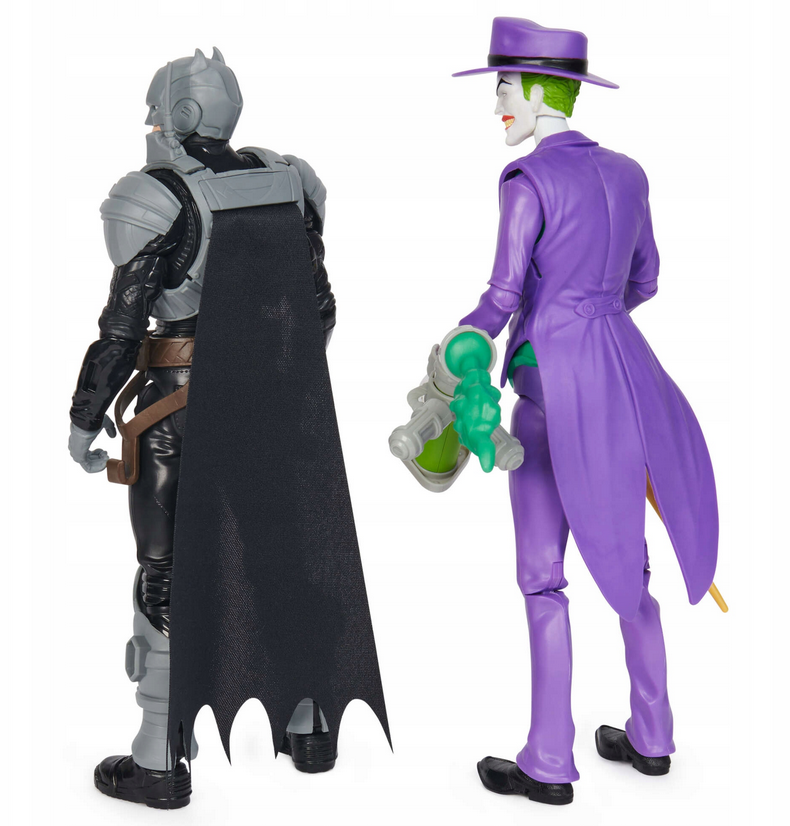 - Zestaw dwóch figurek przedstawia bohaterów uniwersum DC Batmana i Jokera.Figurki posiadają wiele punktów artykulacji - obracaną głowę, ruchome ręce oraz nogi, dzięki czemu można odtwarzać sceny walki między nimi.