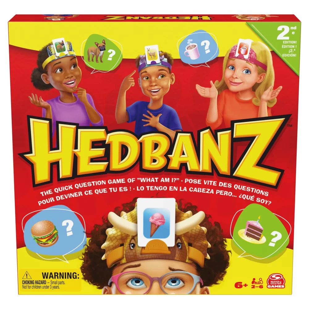 • Szybka gra z pytaniami „Kim jestem?” powraca z drugą edycją. Hedbanz od Spin Master Games to świetna zabawa dla całej rodziny. Gra zawiera 6 nowych Hedbanz – Dino, Narwhal, Robot, Flower, Butterfly i Brain.